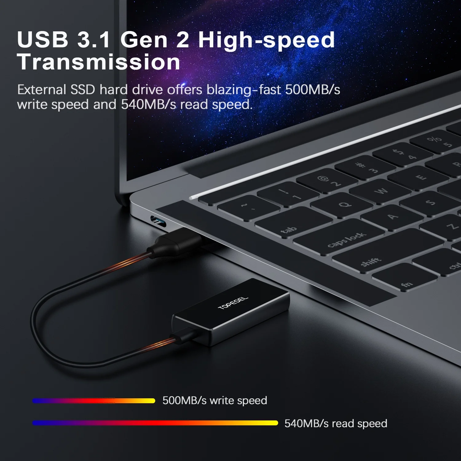 External Solid State Drive TOPESEL 500GB USB 3.1 Mini Portable SSD Black Up to 540MB/s Black