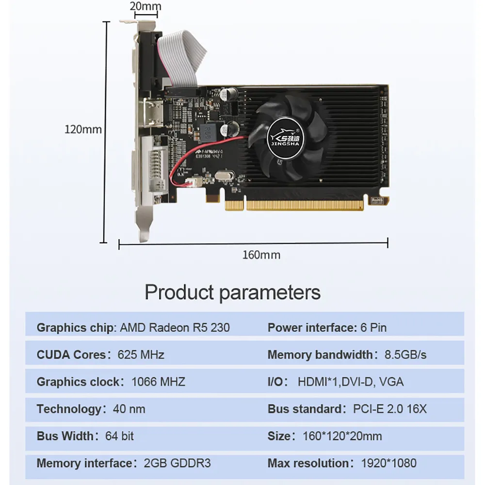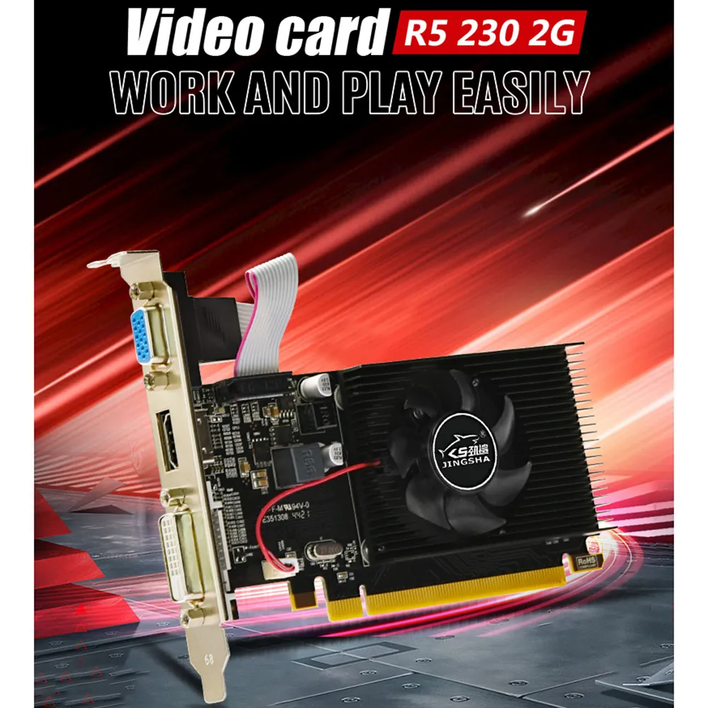 JINGSHA AMD R5 230 Computer Graphics Card, 2G GDDR3, HDMI VGA DVI Video Card ITX SFF Low Profile Ready GPU