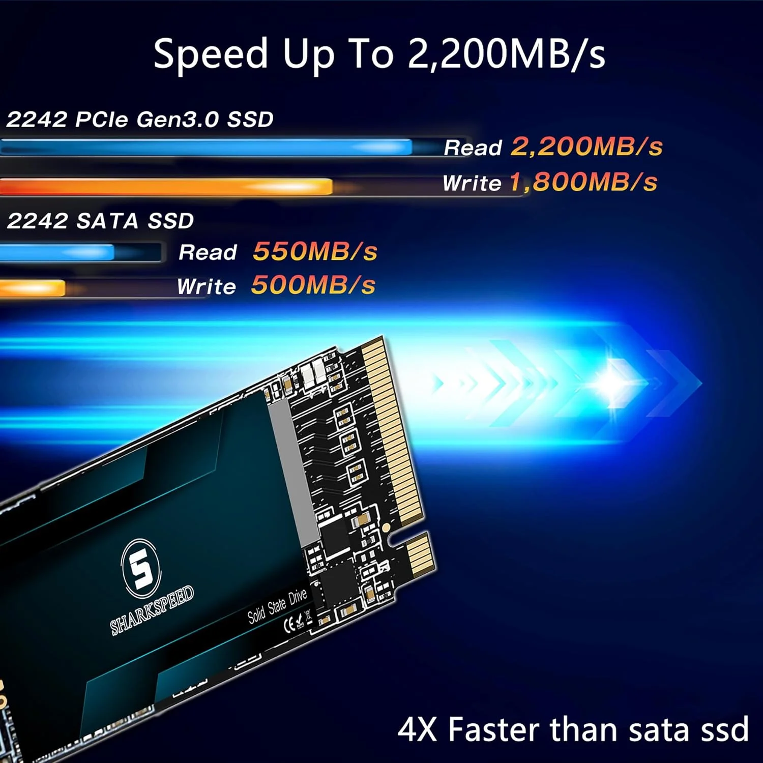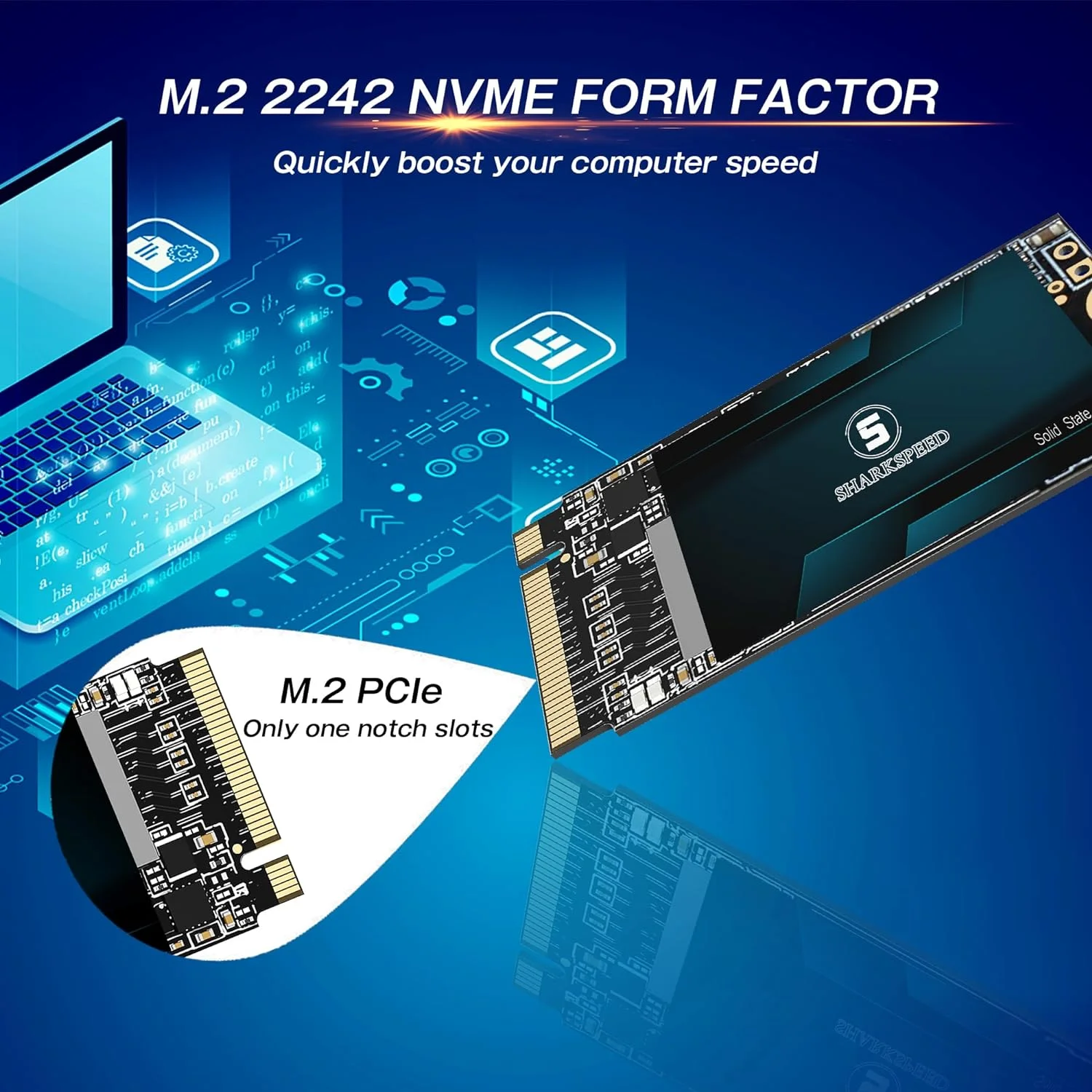 SSD 256GB M.2 2242 NVMe SHARKSPEED PCIe Gen3.0x4 42mm 3D NAND Internal Solid State Drive for Laptop Desktop Ultrabook