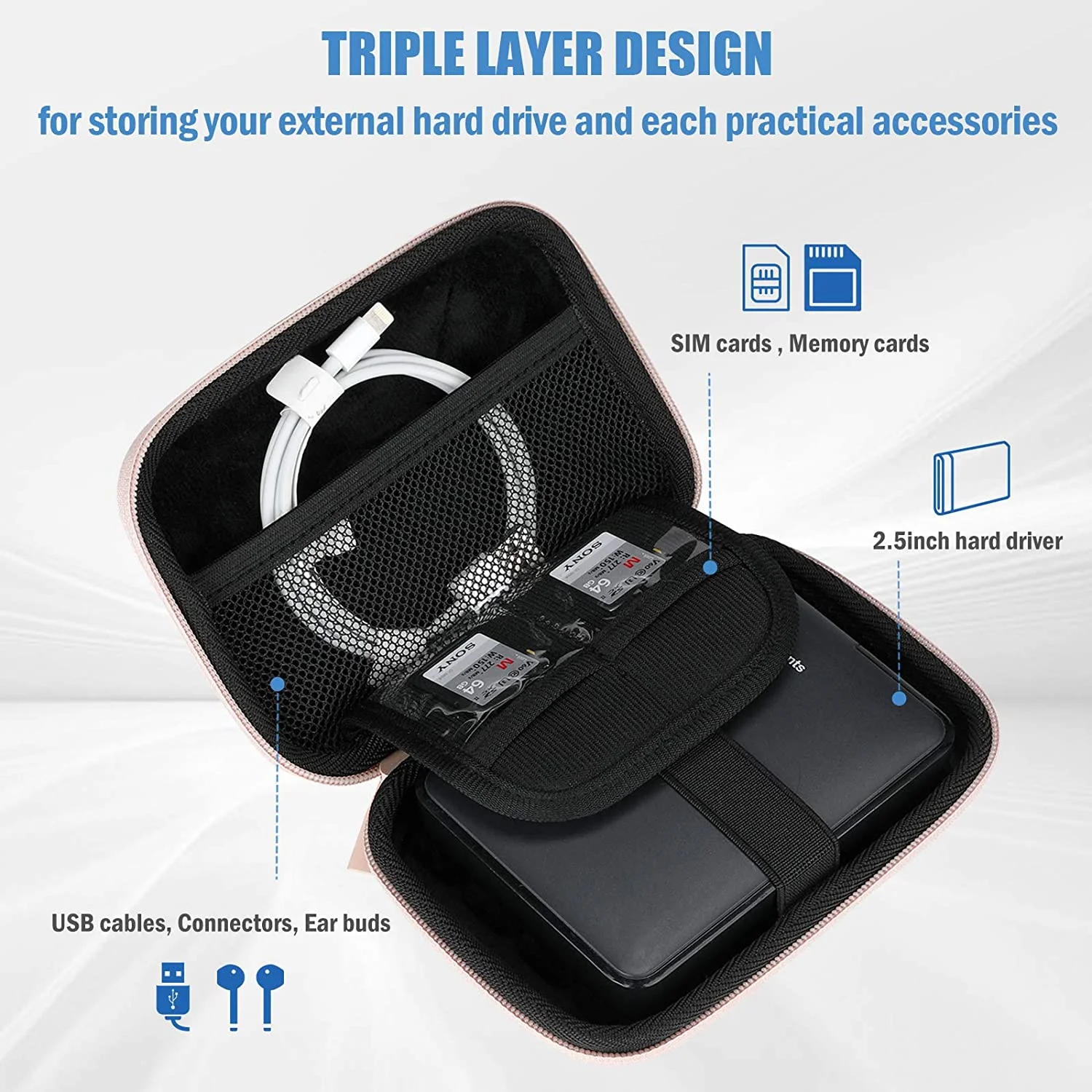 Hard Drive Case for Canvio Basics WD Elements My Passport Seagate Backup Plus Slim 1TB 2TB 3TB 4TB 2.5" USB 3.0 Samsung T9 Portable External Drive Case Rose Gold