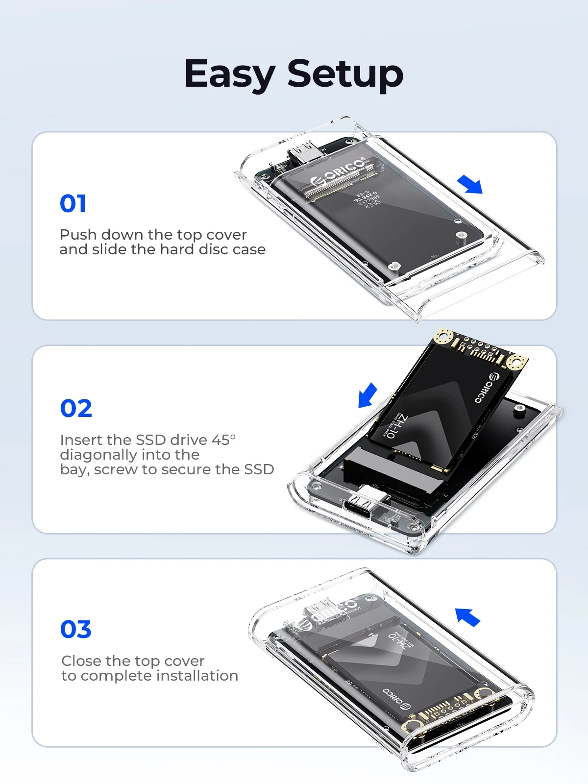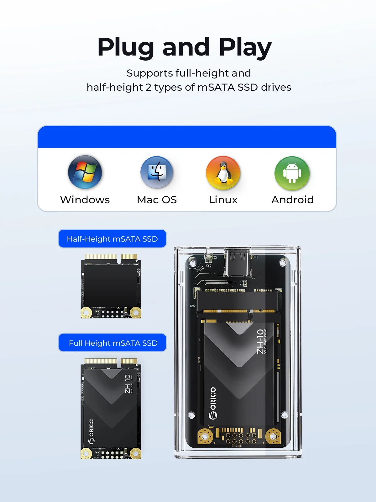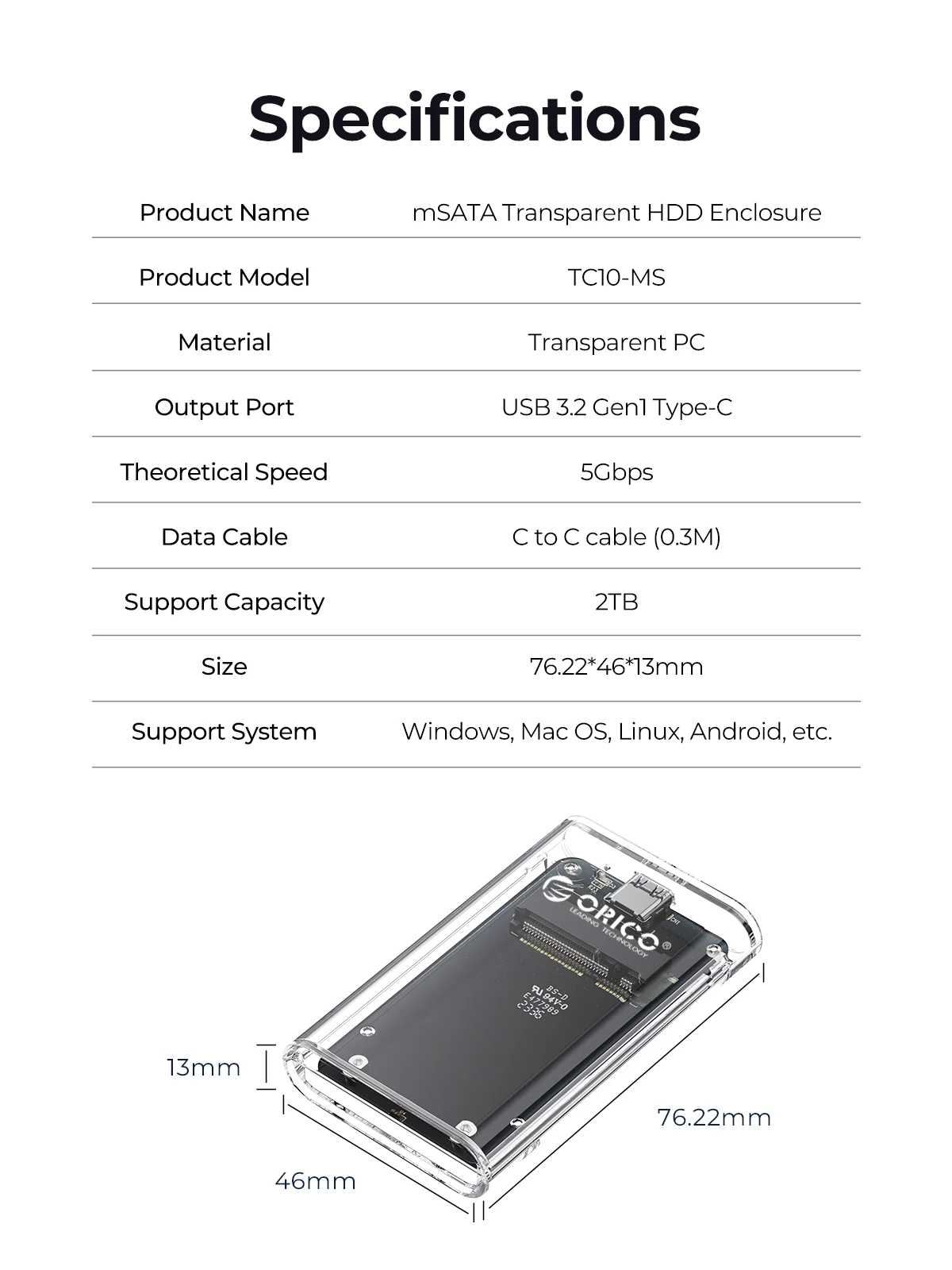 ORICO Mini mSATA SSD Case to USB 3.2 Gen1 SSD Enclosure Adapter Transparent External Adapter 5Gbps for mSATA NGFF SSD Samsung