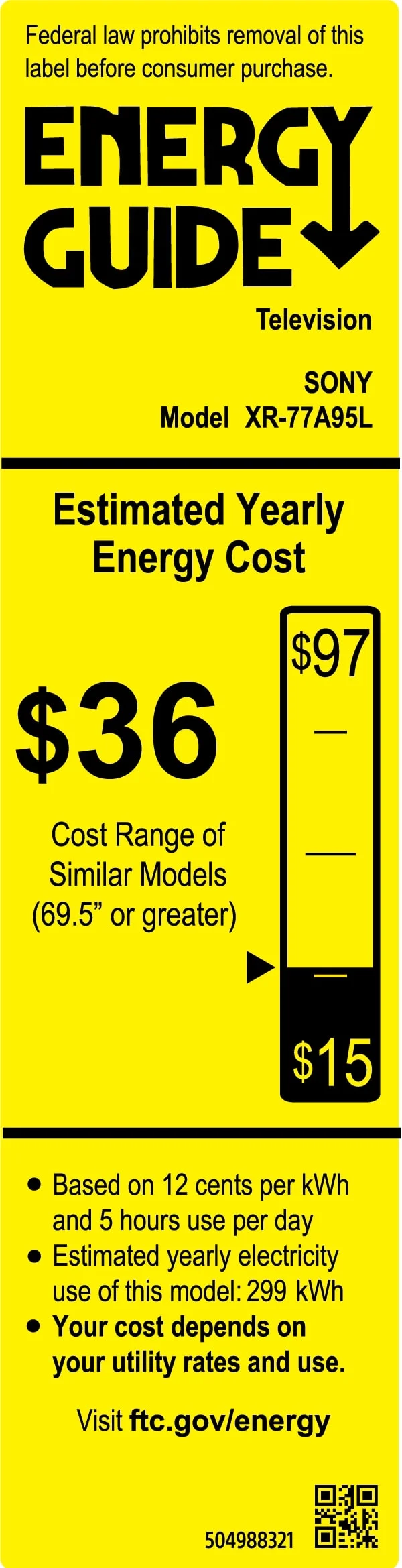 Sony XR77A95L 77 Inch QD-OLED 4K UHD Smart Google TV with AI Upscaling and 2 Year Amber Protection Plan (2023)