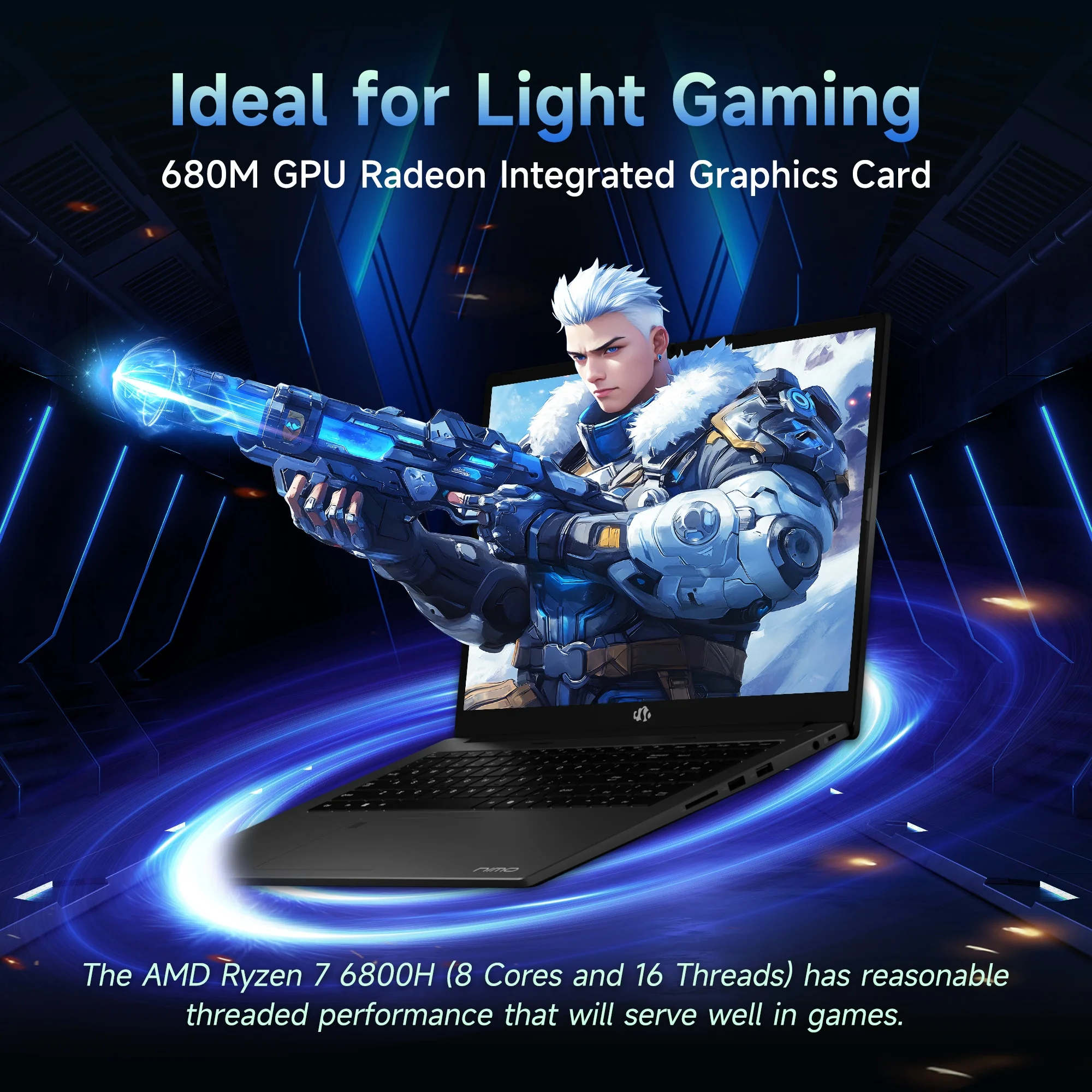 15.6" Light-Gaming-Laptop, 8 Cores AMD Ryzen 7 Pro 6850U 32GB LPDDR5 RAM 1TB SSD (Beat i7-1360P Up to 4.7GHz) AMD Radeon 680M GPU IPS FHD Computer with 100W Type-C Backlit Keyboard Fingerprint
