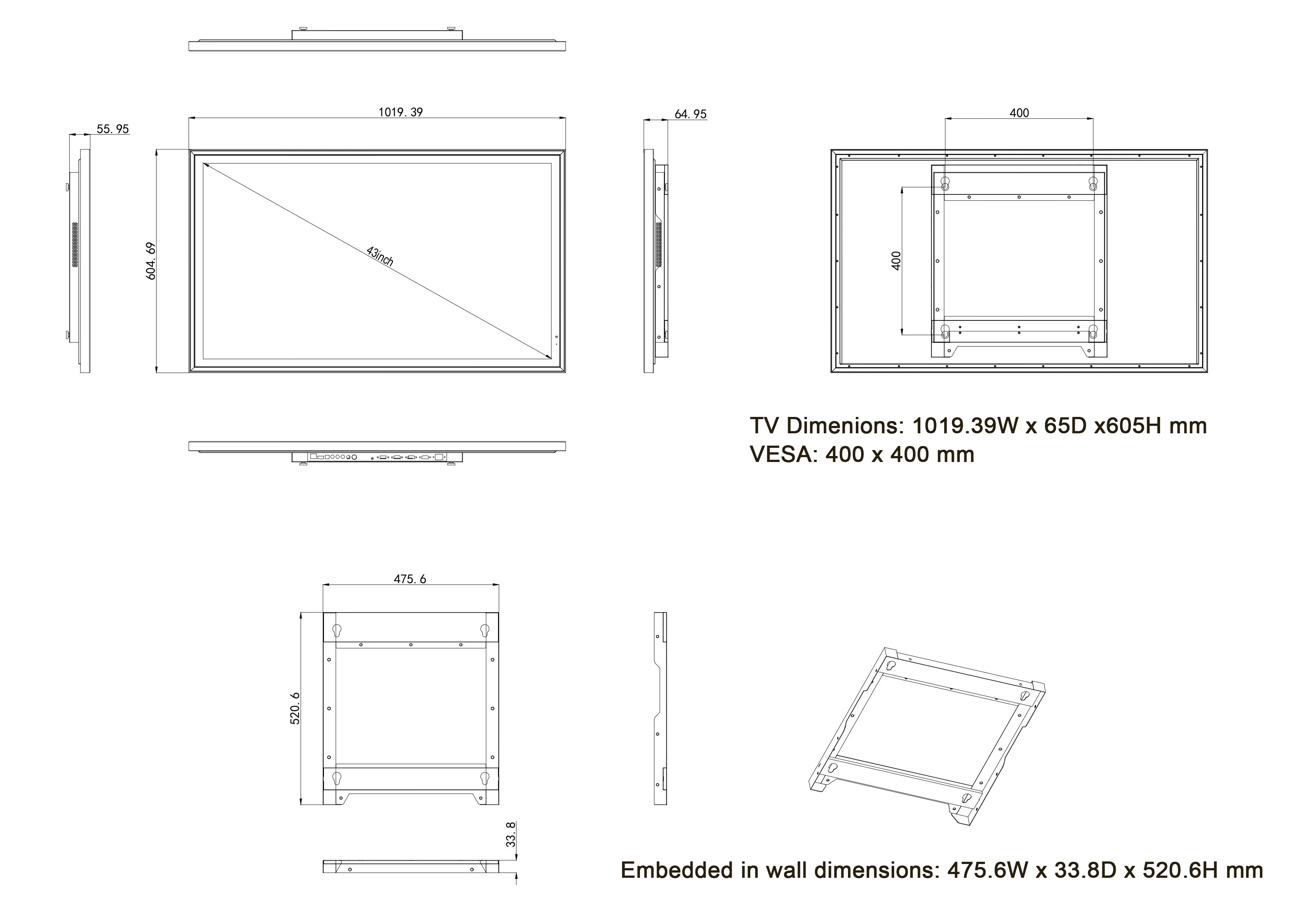 Elecsung 43 inches Mirror TV with LED Light 4K Screen Decoration Makeup LED Mirror webOS Built-in ATSC DTV Tuner Voice Control Alexa