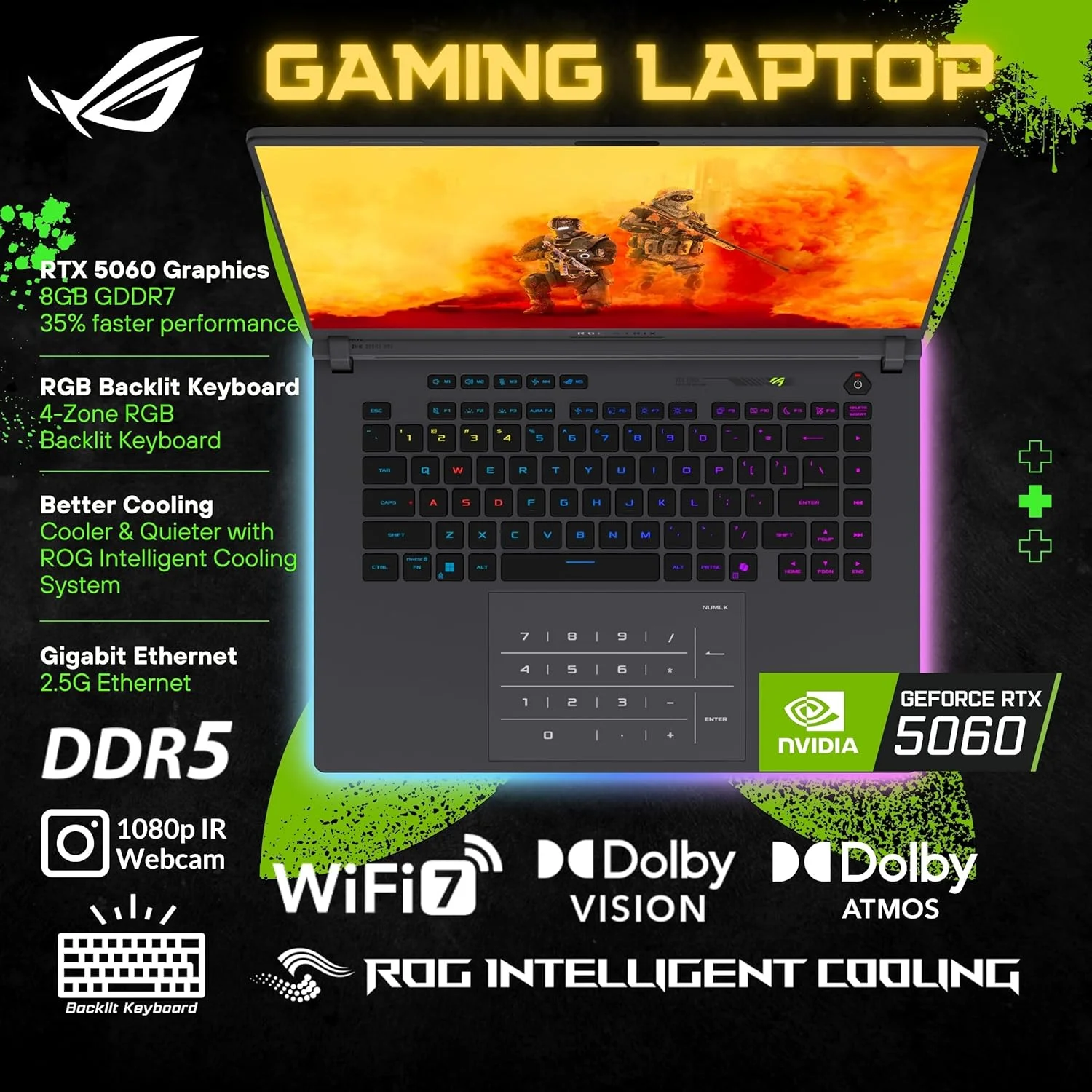 ASUS ROG Strix G16 Gaming Laptop, 16" 1920 x 1200 FHD+ 165Hz Display, 14th Gen Intel 16-Core i7-14650HX, NVIDIA GeForce RTX 5060 8GB GDDR7, RGB Backlit KB, Win11 Home(16GB DDR5 * 1TB SSD)