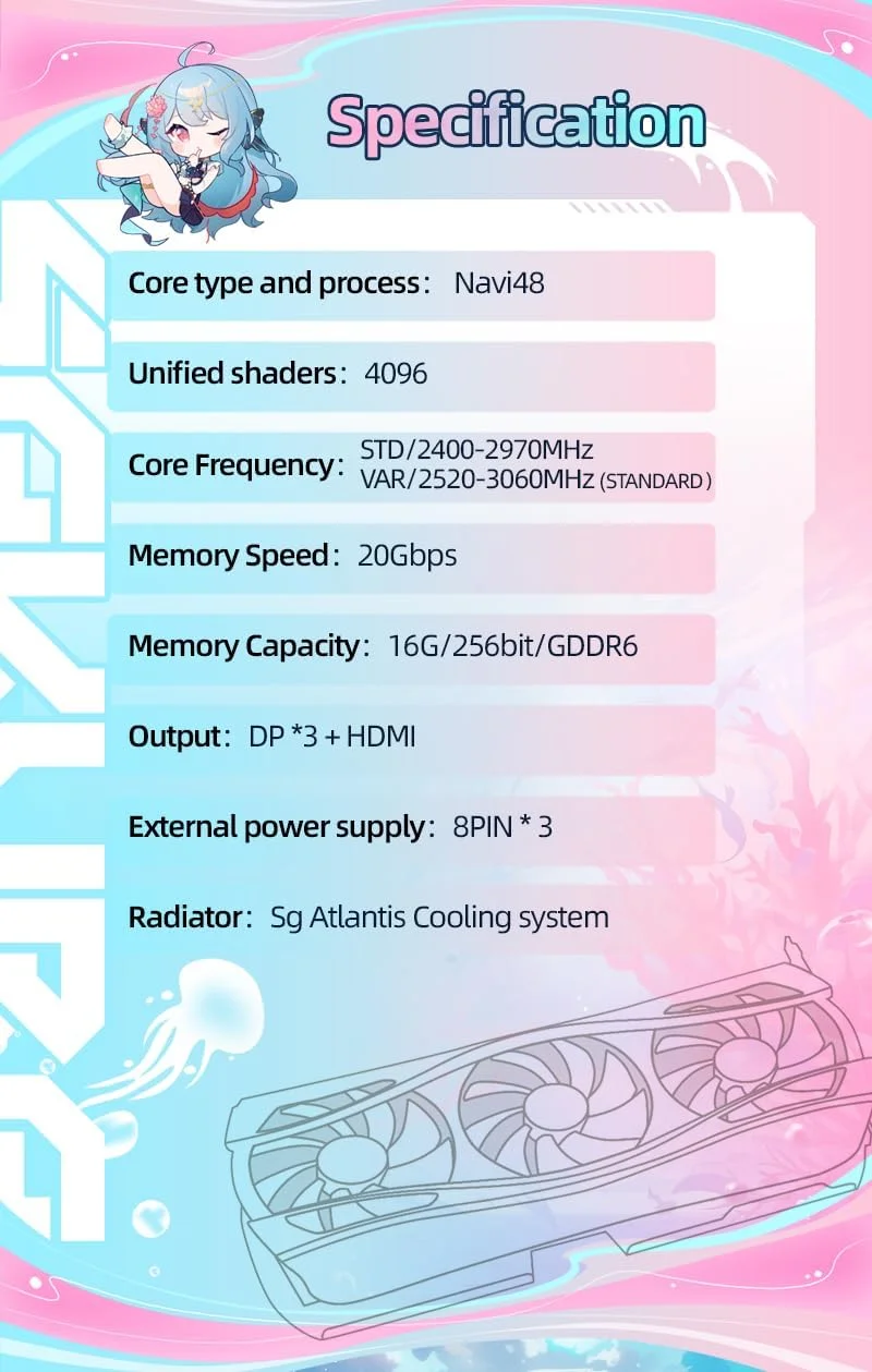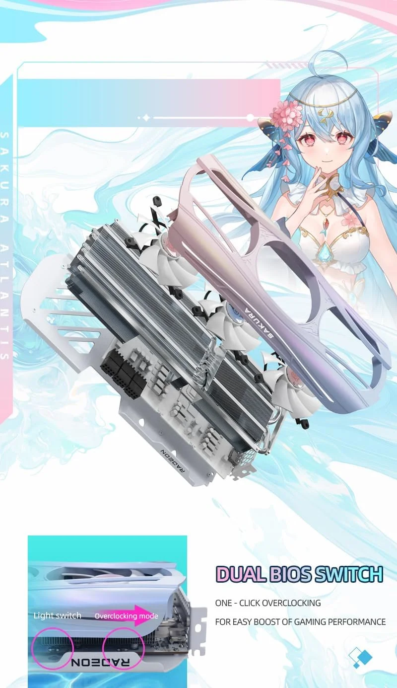 Yeston Sakura Atlantis Radeon RX 9070 XT 16G GDDR6 256bit 4nm Desktop Graphics Card-3x DisplayPort, 1x HDMI