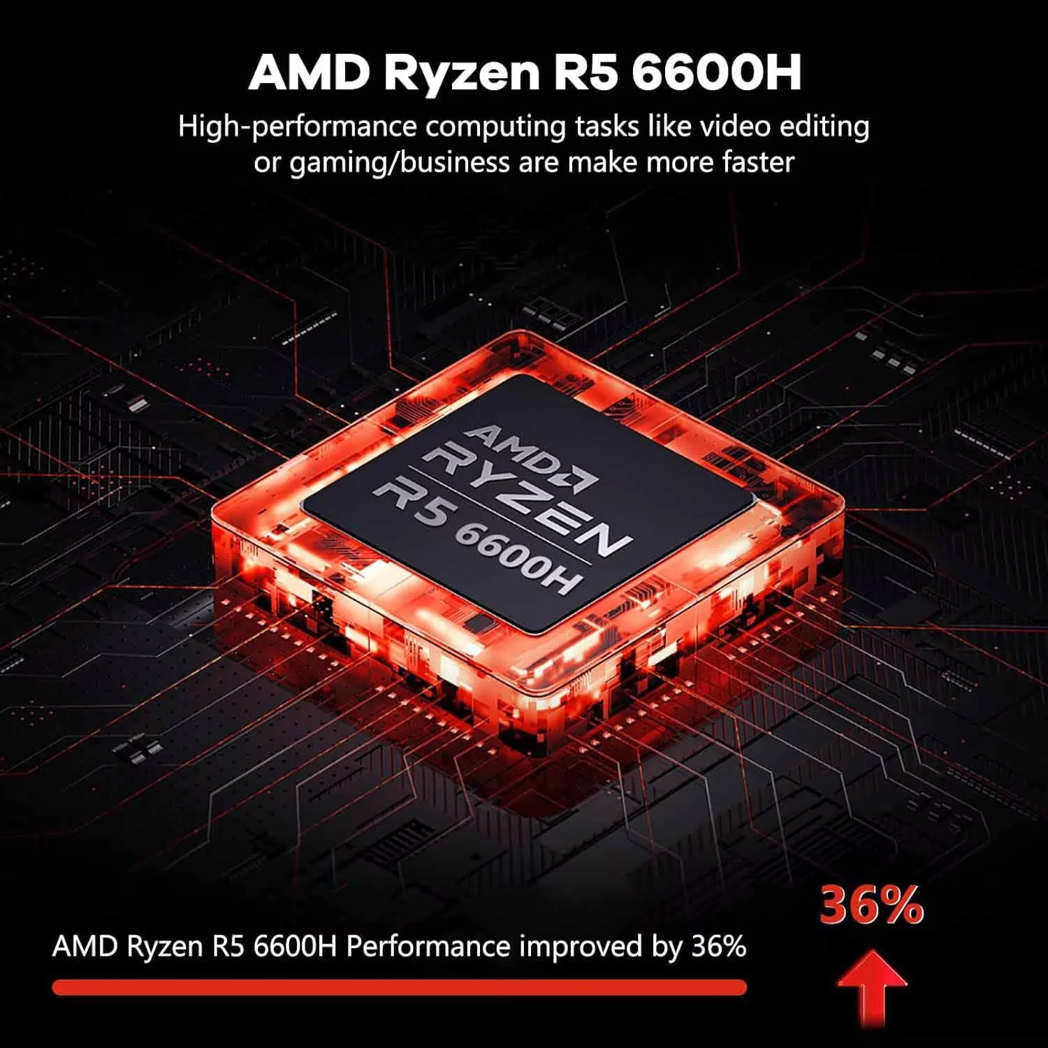 15.6" FHD Business-Gaming-Laptop 6-Cores AMD Ryzen 5 6600H(Up to 4.5 GHz) 660M GPU 32GB DDR5 2TB SSD Laptop-Computer with 100W Type-C Backlit Keyboard Fingerprint-Red