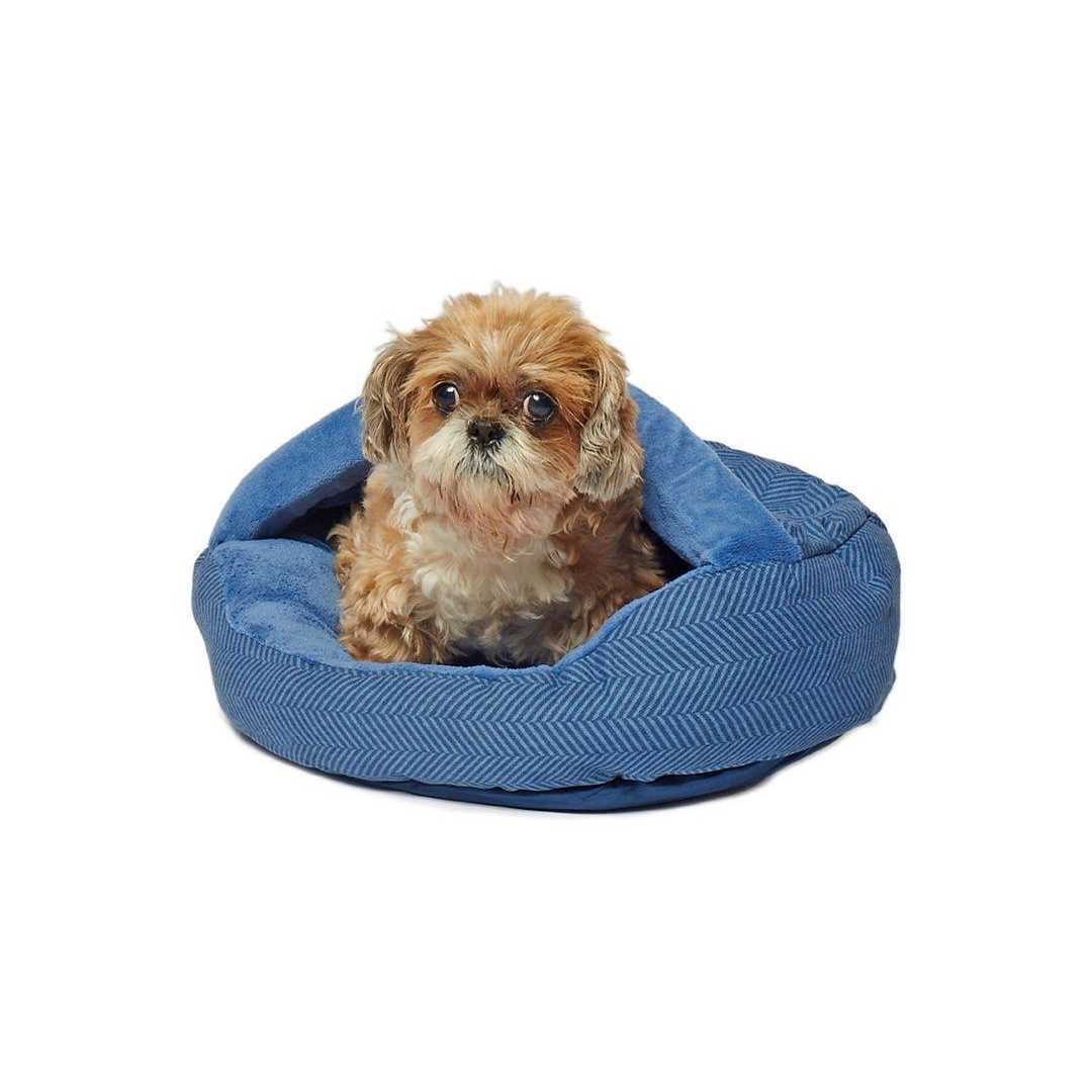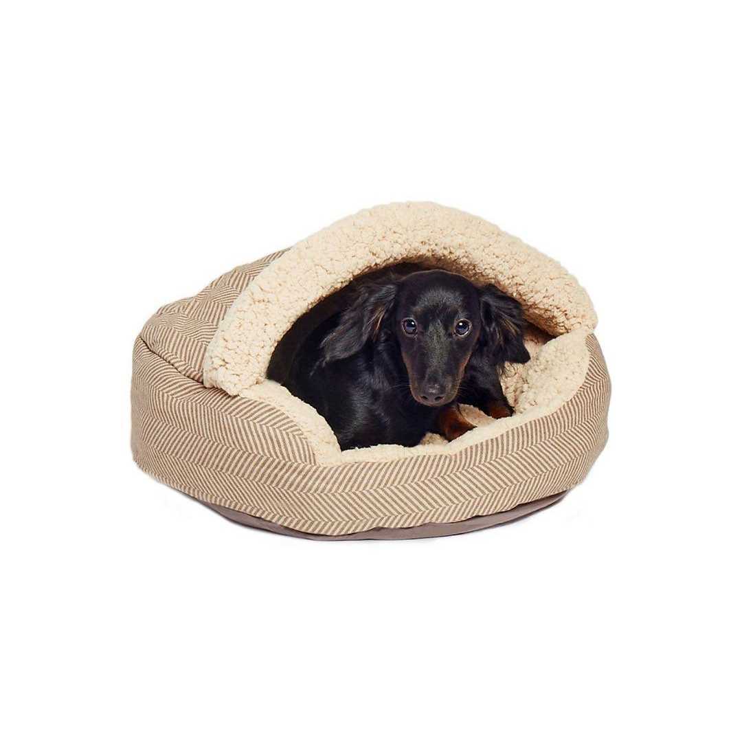 Precious Tails Herringbone Canvas Fleece Deep Dish Cave Bed - Pet Supplies online store