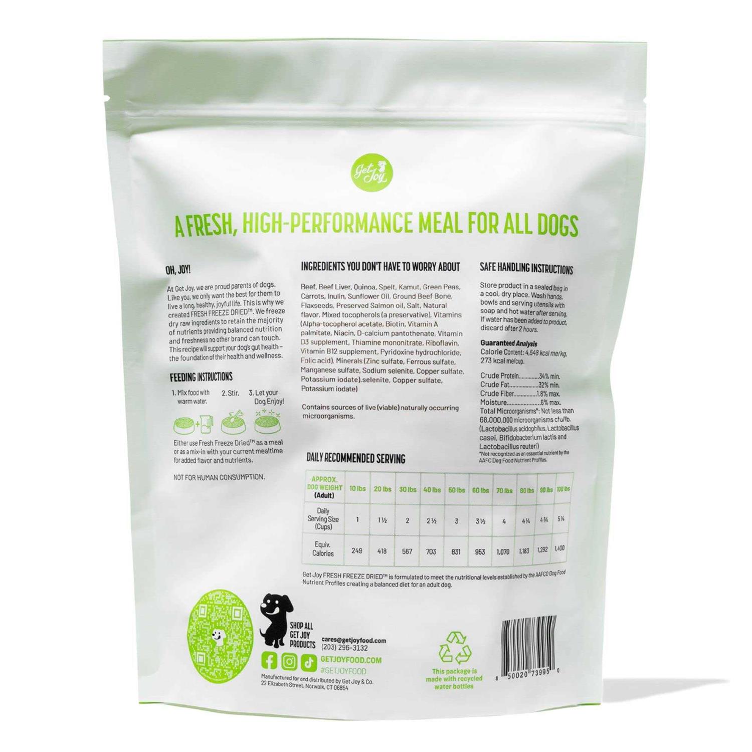 Get Joy Gut Health Fresh Freeze Dried Raw Meal, Beef Recipe Bag, Dog Food for Dogs of All Breeds and Life Stages - Pet Supplies online store
