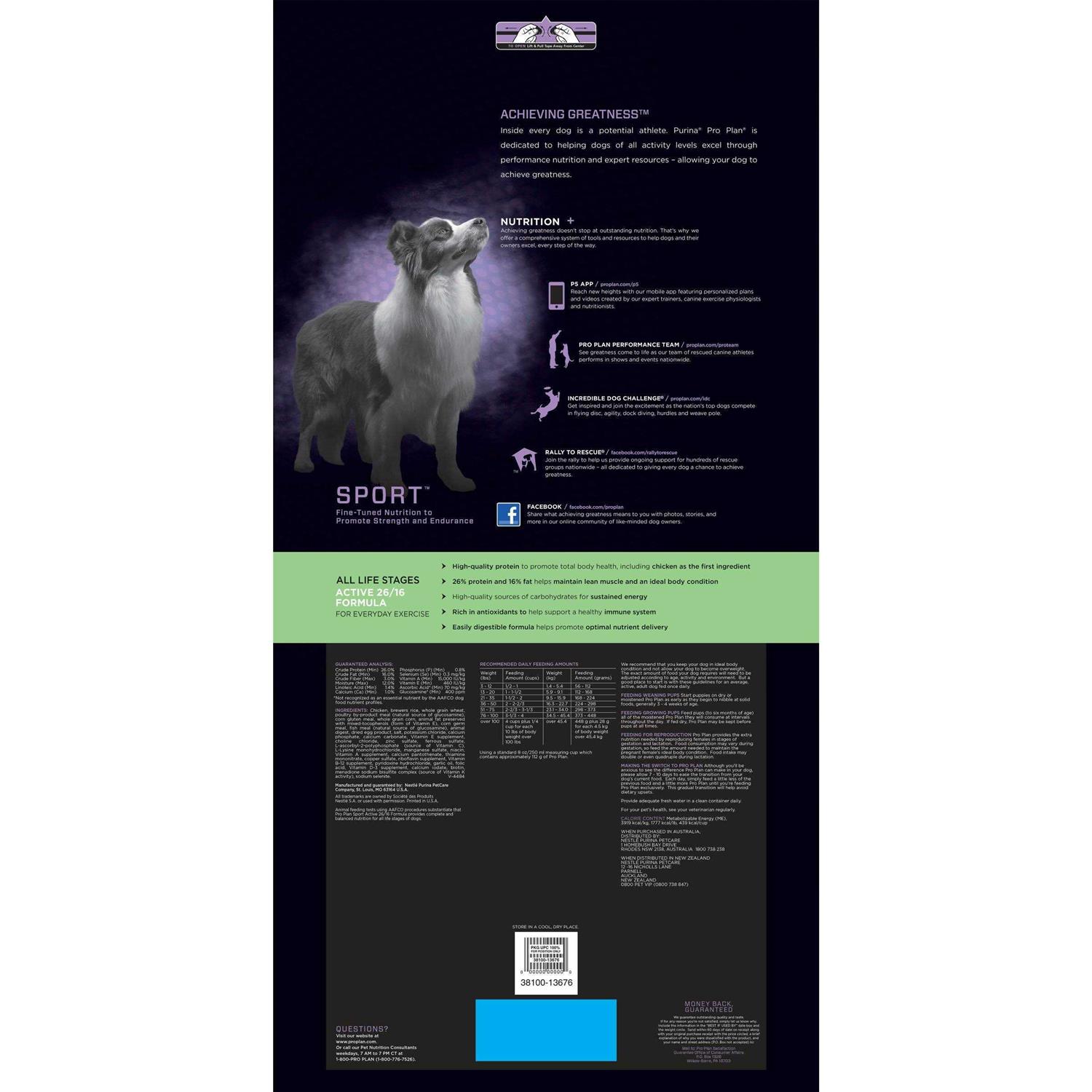 Purina Pro Plan Dry Dog Food Sport Active 26/16 Formula - Pet Supplies online store