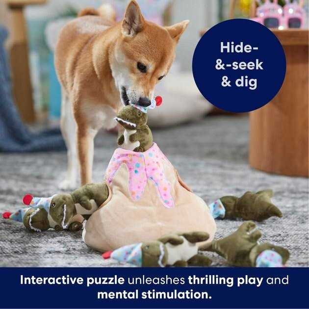 Frisco Birthday Volcano & Dinosaurs Hide & Seek Puzzle Plush Squeaky Dog Toy - Pet Supplies online store