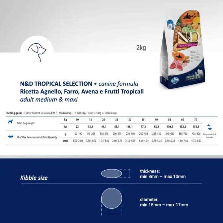 Farmina N&D Tropical Selection Dry Dog Food Lamb Spelt Oats and Tropical Fruits Adult Medium & Maxi - Pet Supplies online store