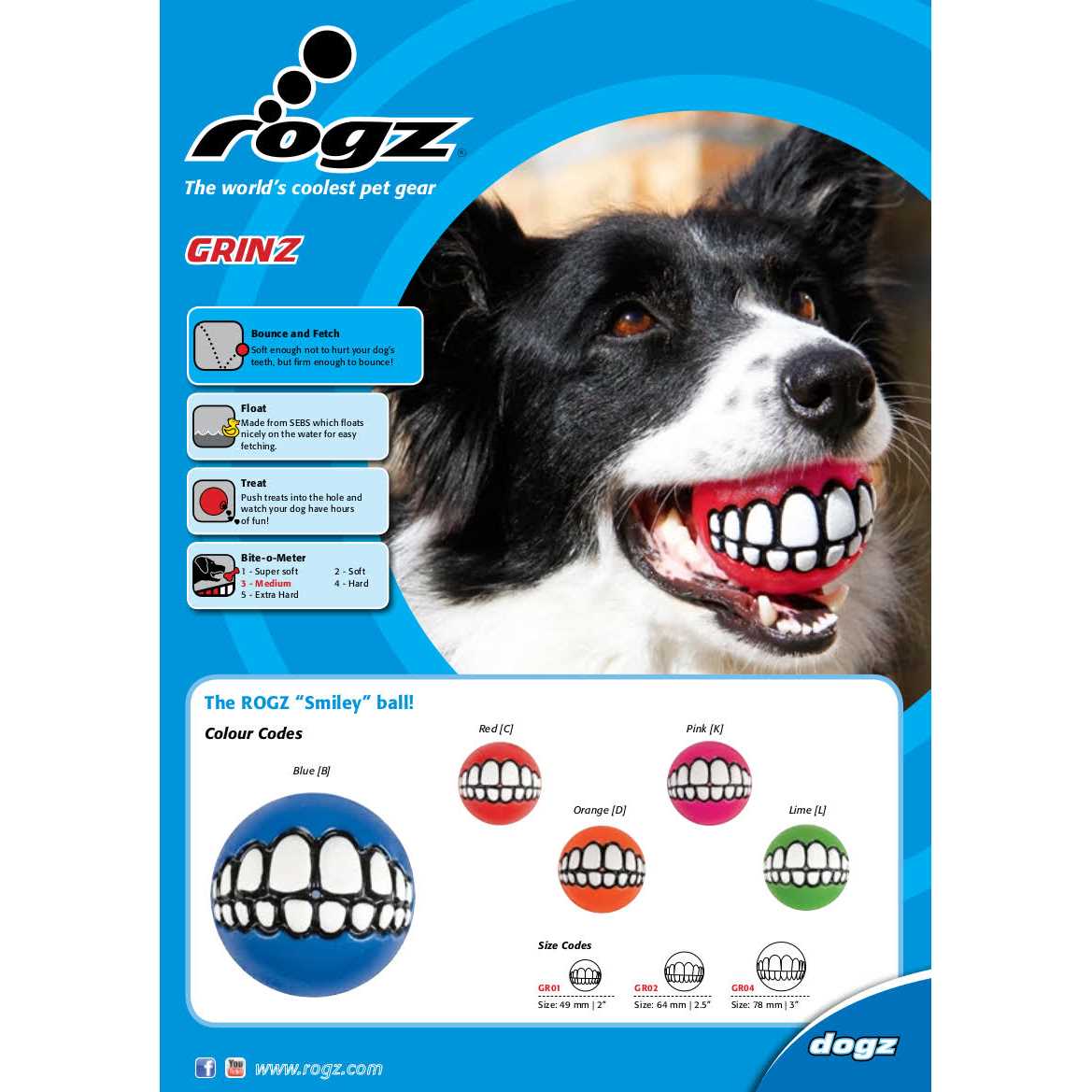 Rogz Grinz Ball Dog Toy - Pet Supplies online store