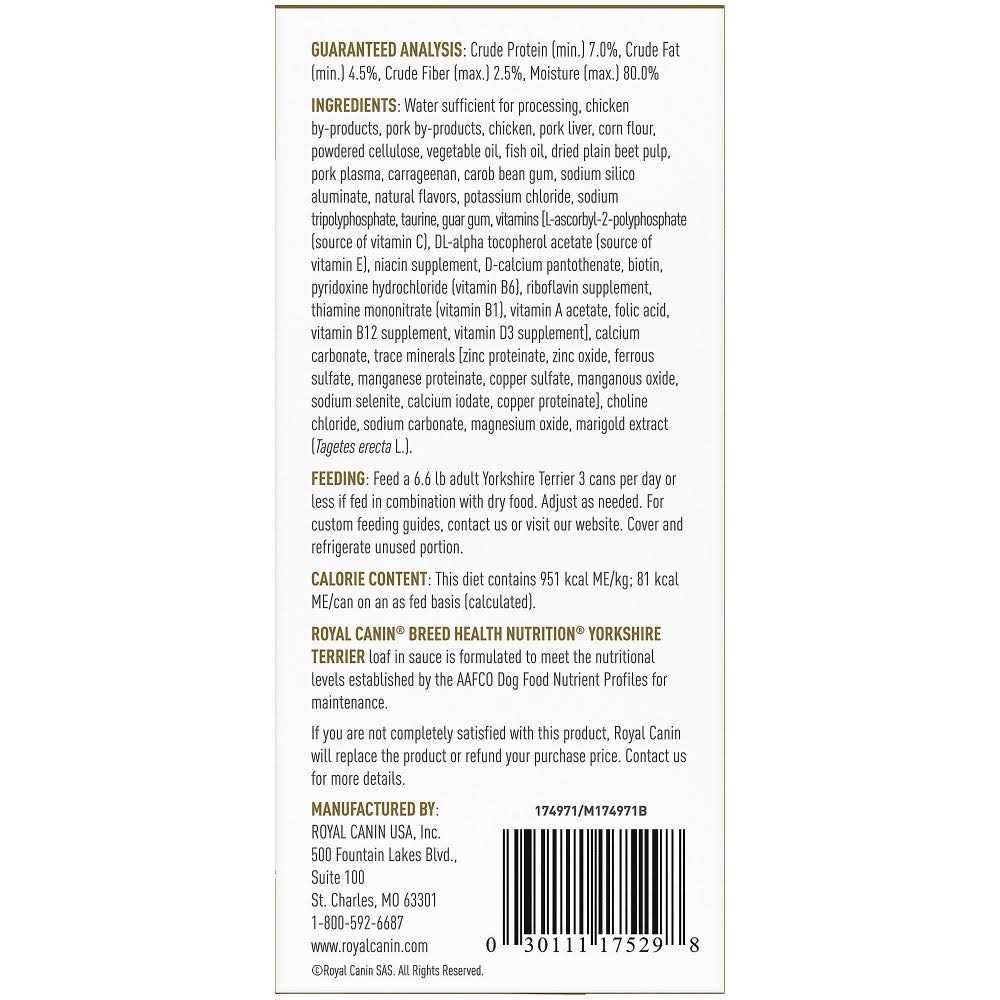 Royal Canin Breed Health Nutrition Yorkshire Terrier Adult Loaf In Sauce Dog Food - Pet Supplies online store