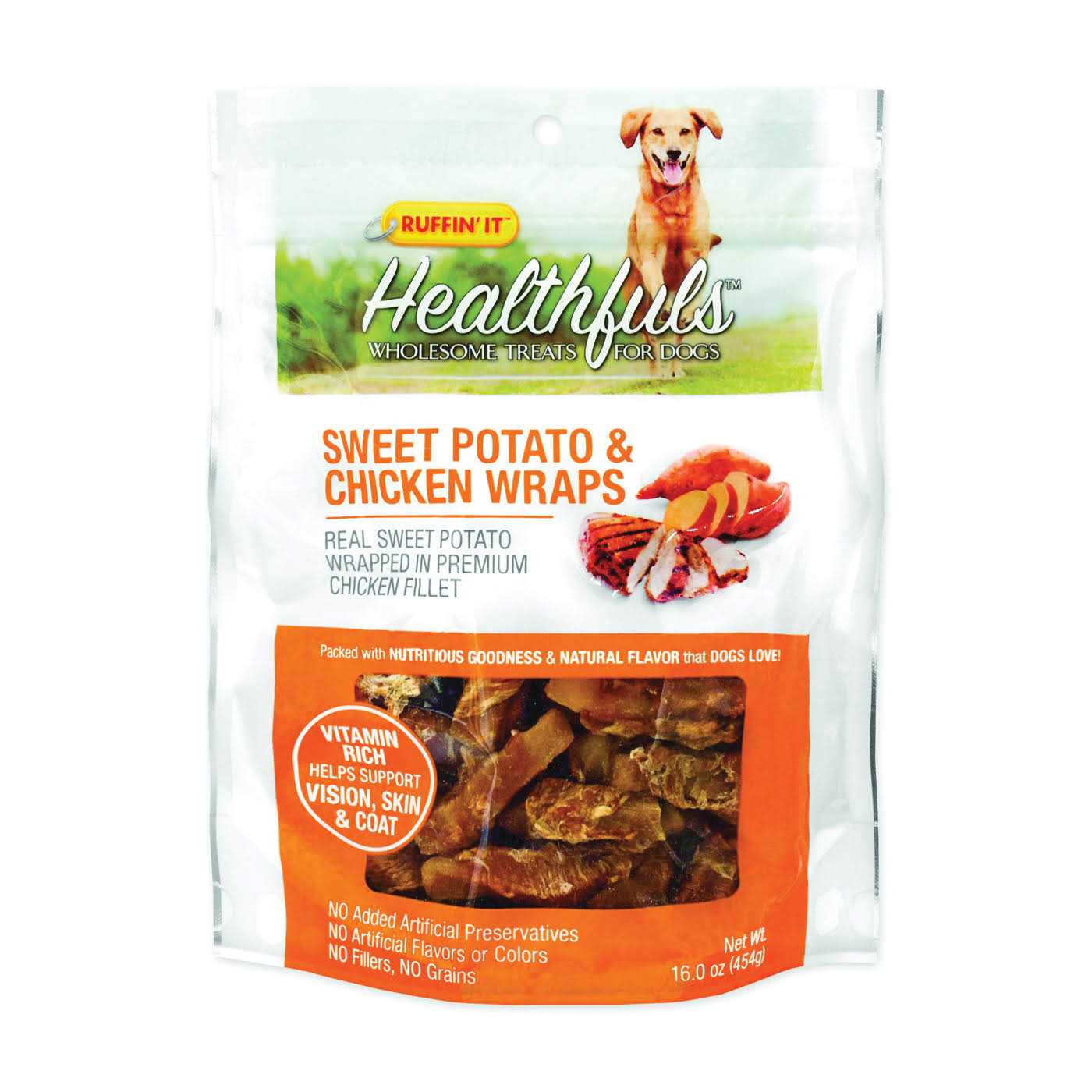Ruffin' It Healthfuls Treats for Dogs, Sweet Potato & Chicken Wraps, Wholesome - 16.0 oz - Pet Supplies online store