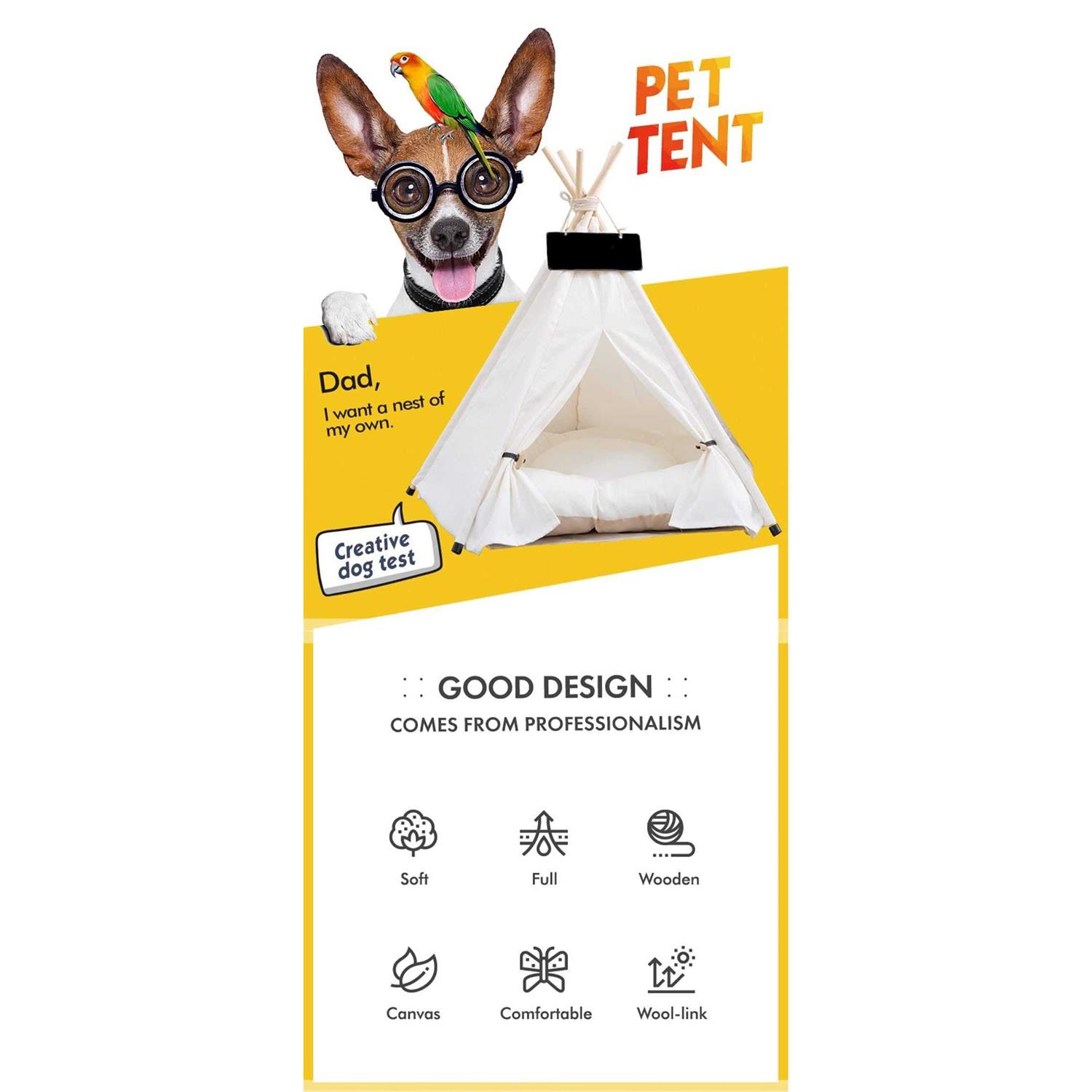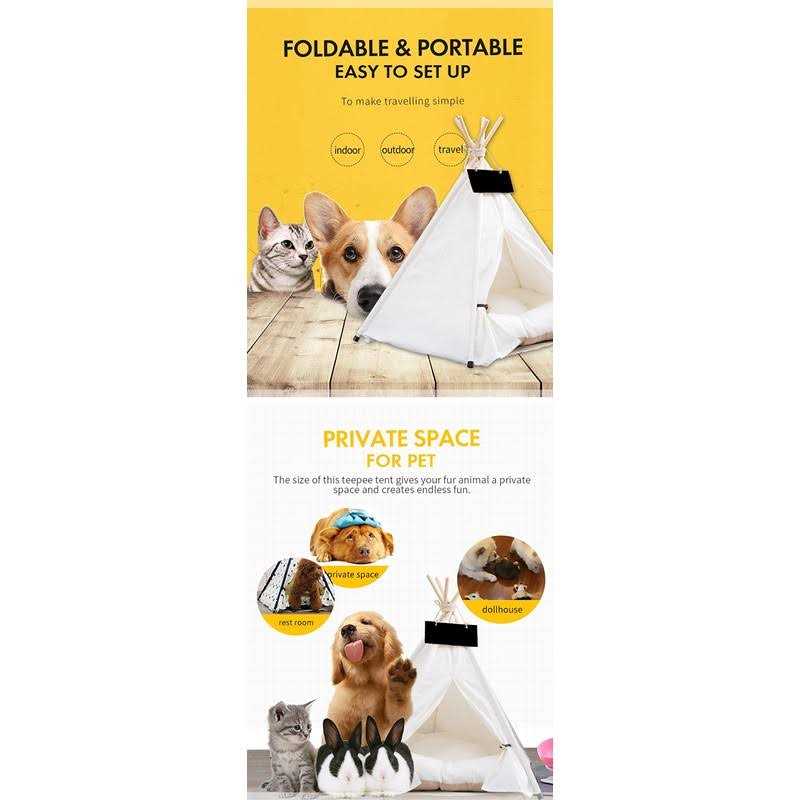 scnbom Pet Teepee Dog & Puppy Cat Bed Portable Houses with Thick Cushion for Pets Up to 20Lbs - Pet Supplies online store