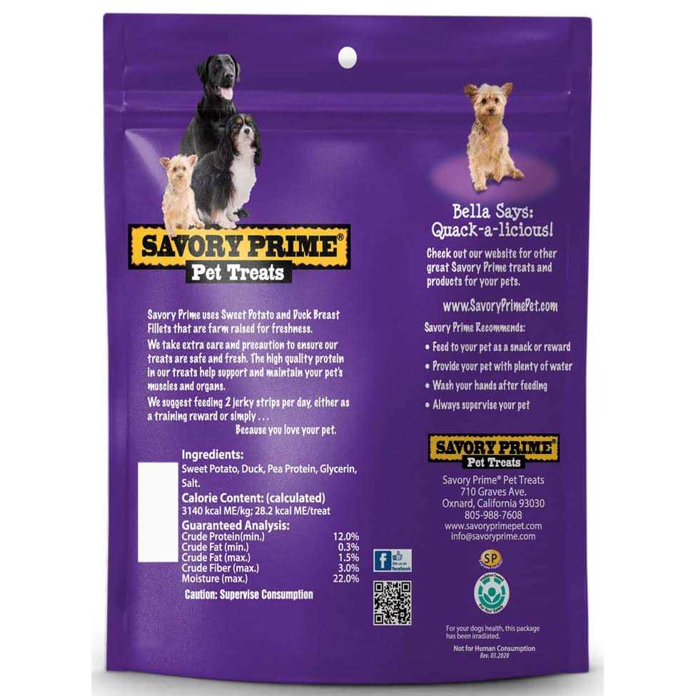 Savory Prime Dog Treats Sweet Potato & Duck Jerky - Pet Supplies online store