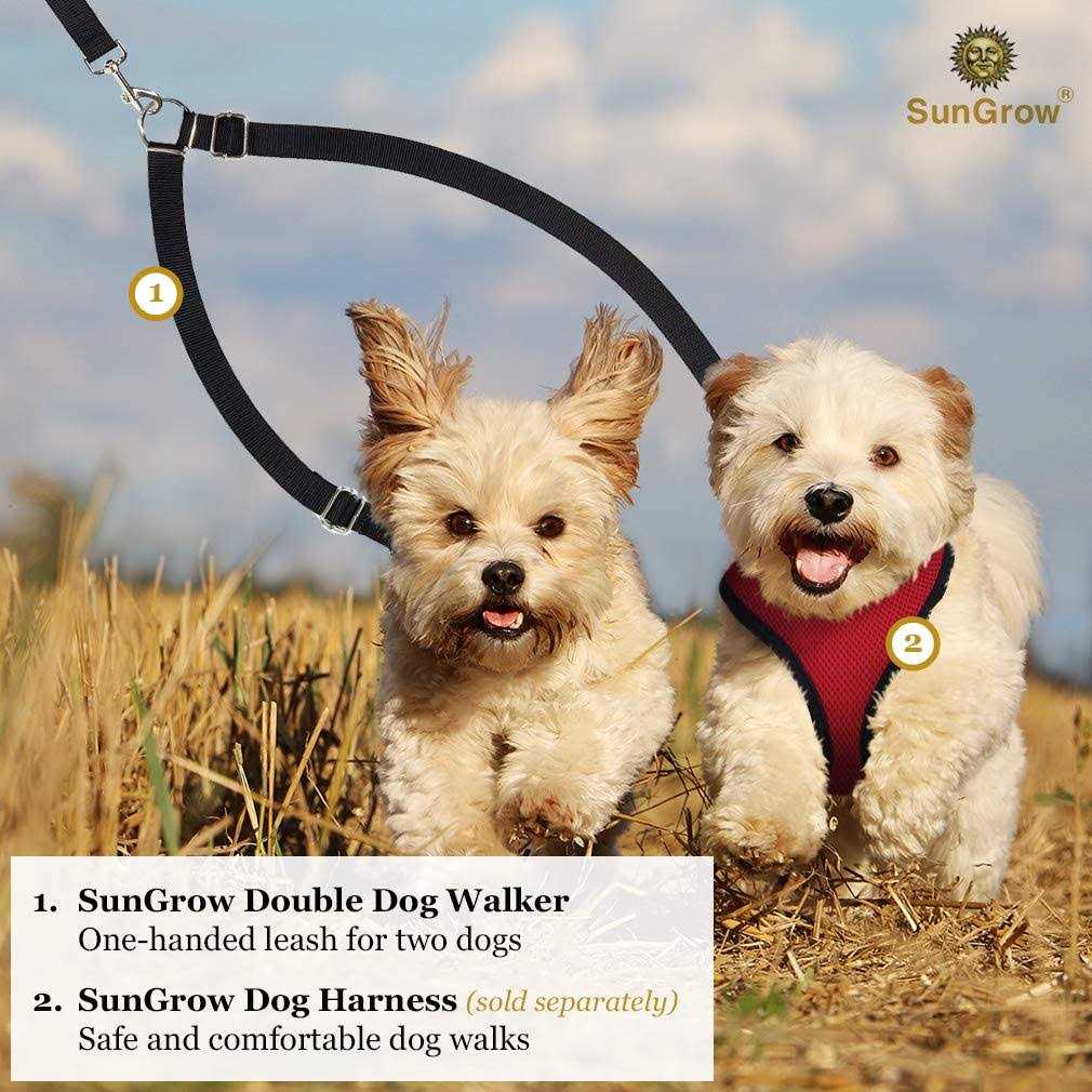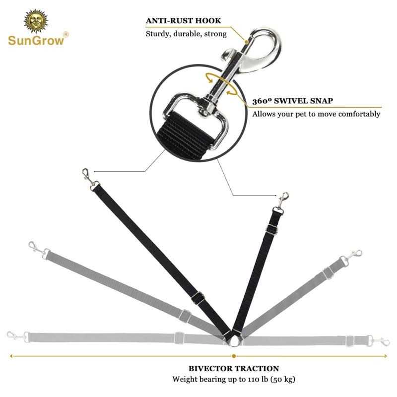 SunGrow Double Dog Walker Leash, 16-24 Inches in Length, Head Tilt Adjustable, Tin Alloy Snaps, Suitable for Dogs and Puppies - Pet Supplies online store
