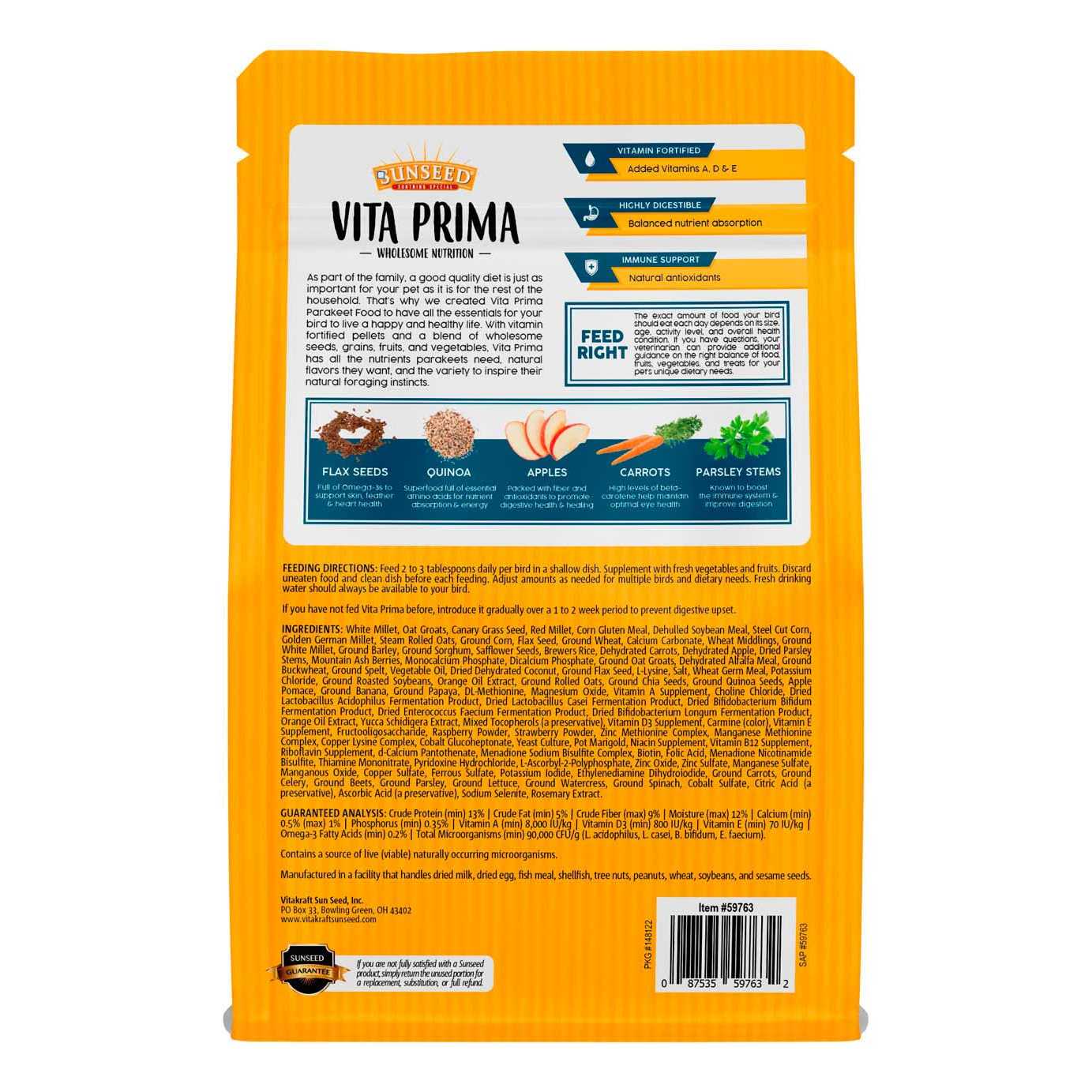 Sunseed Vita Prima Parakeet Food - Pet Supplies online store