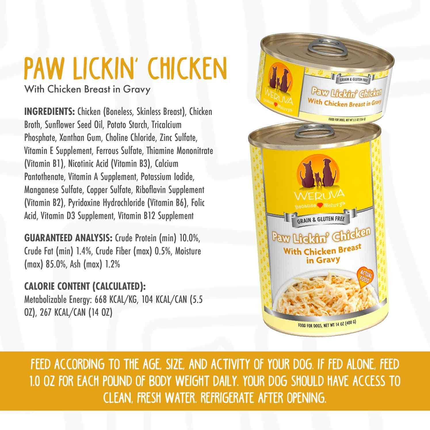 Weruva Paw Lickin' Chicken in Gravy Canned Dog Food, 14-oz can, 12 ct - Pet Supplies online store
