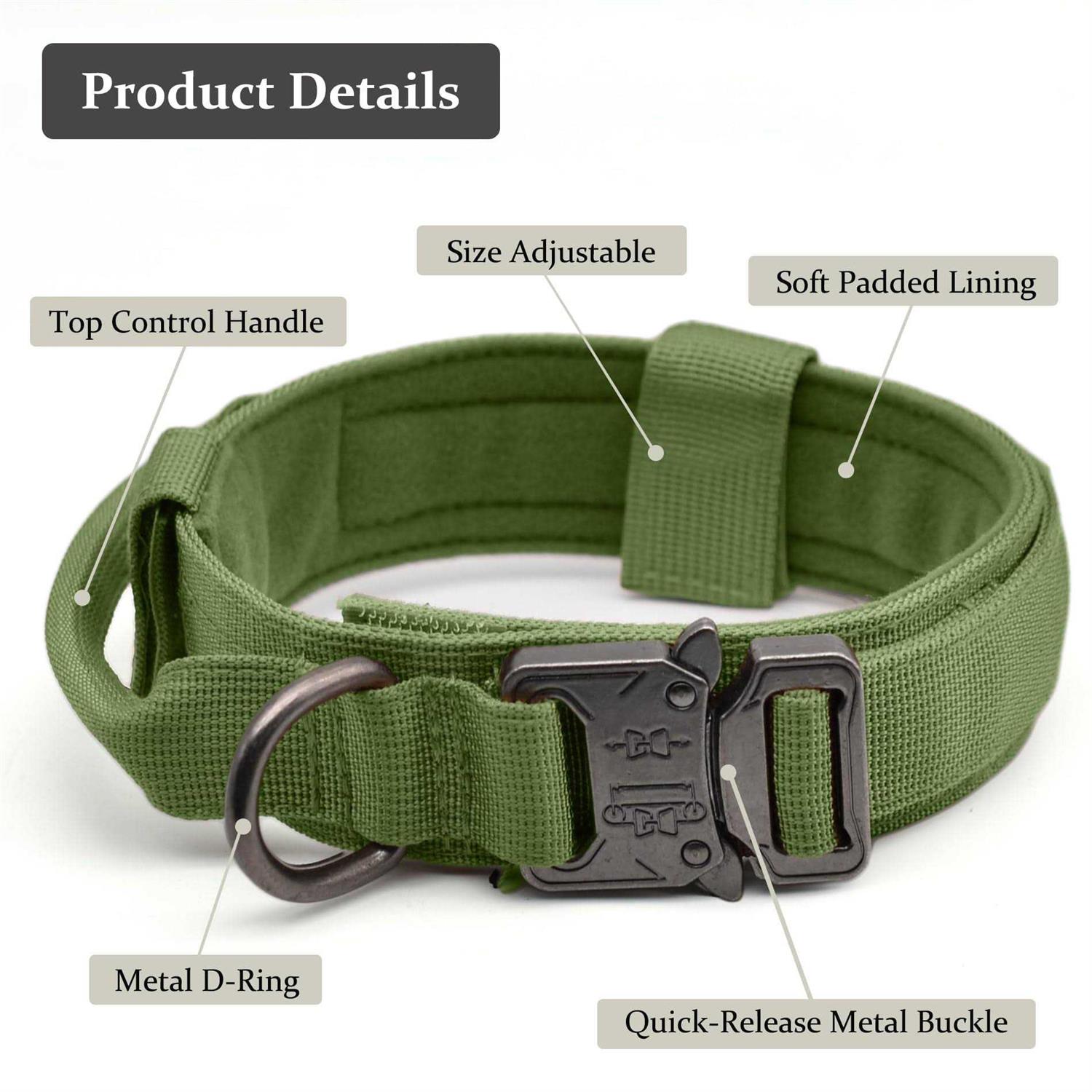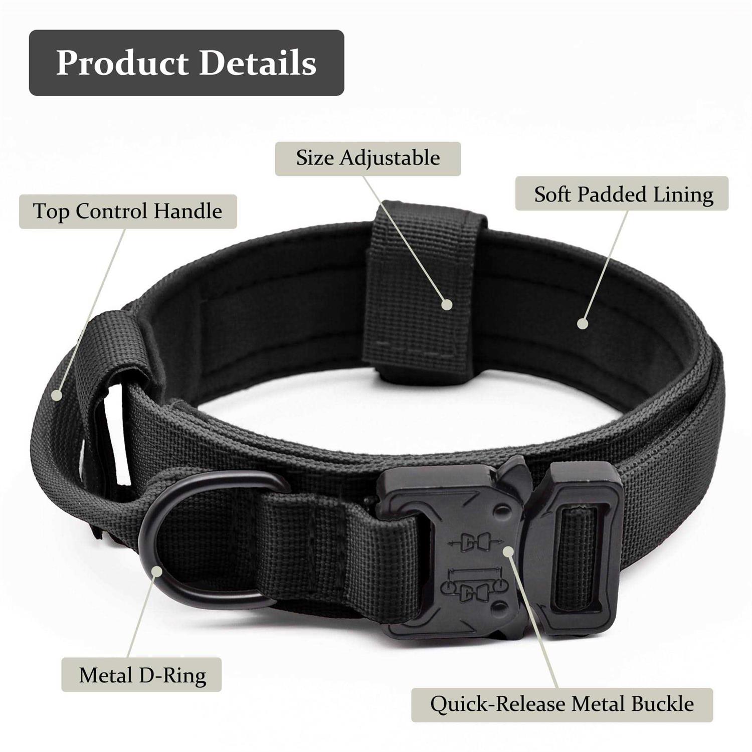 Tactical Dog Collar, Adjustable Military Training Nylon Dog Collar with Control Handle and Heavy Quick-Release Metal Buckle for Small Medium Large - Pet Supplies online store