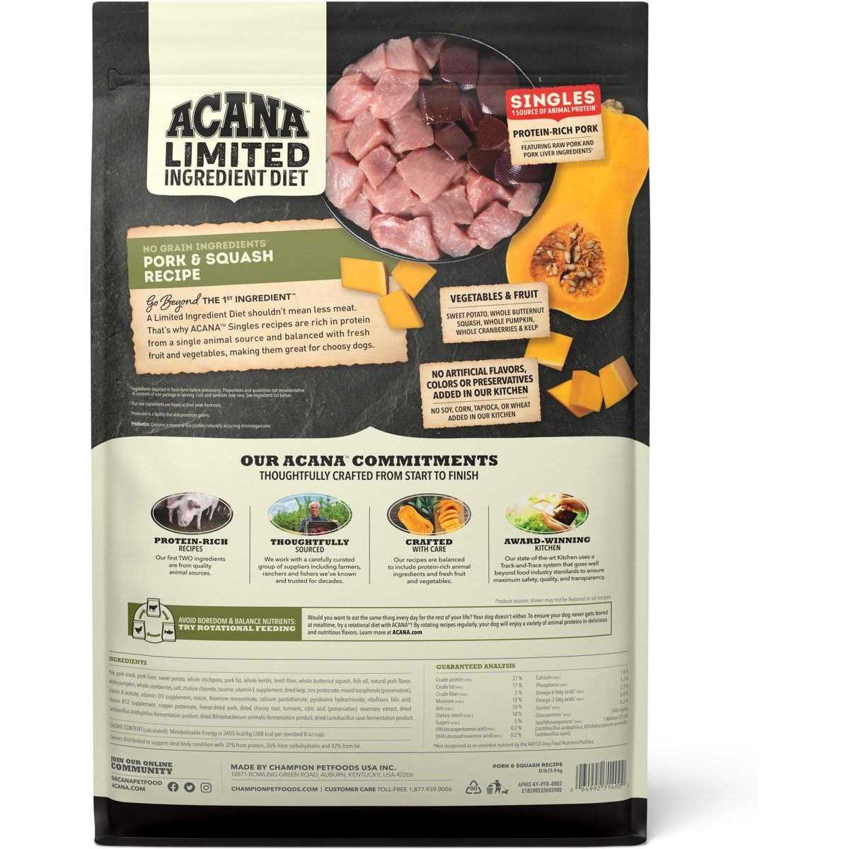 ACANA Singles Limited Ingredient Diet Pork & Squash Recipe Grain-Free Dry Dog Food, 22.5-lb bag - Pet Supplies online store