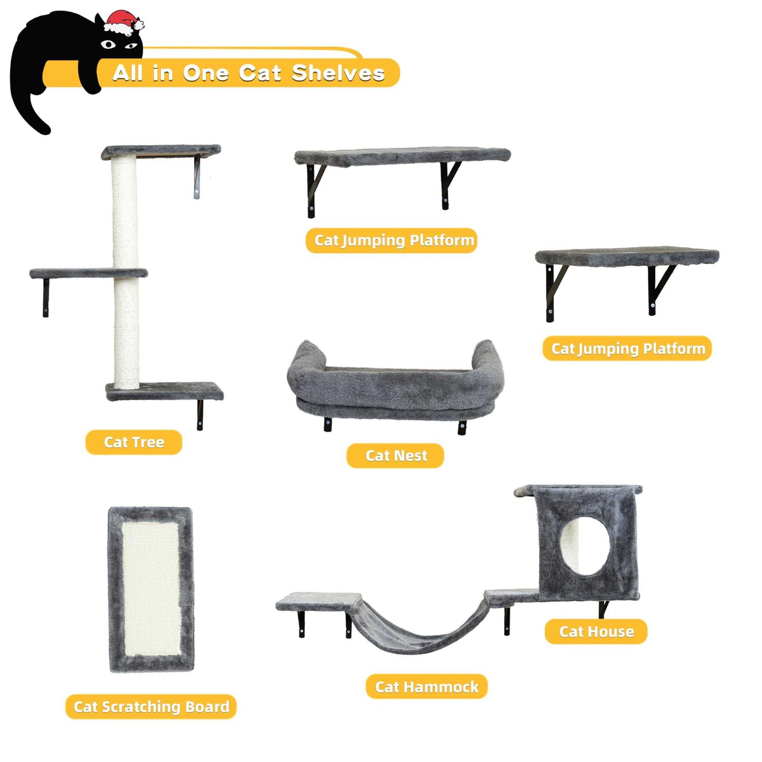 NUNU LAB Cat Wall Shelves 6 Pcs Luxury Wall-Mounted Cat Climber Set - Pet Supplies online store