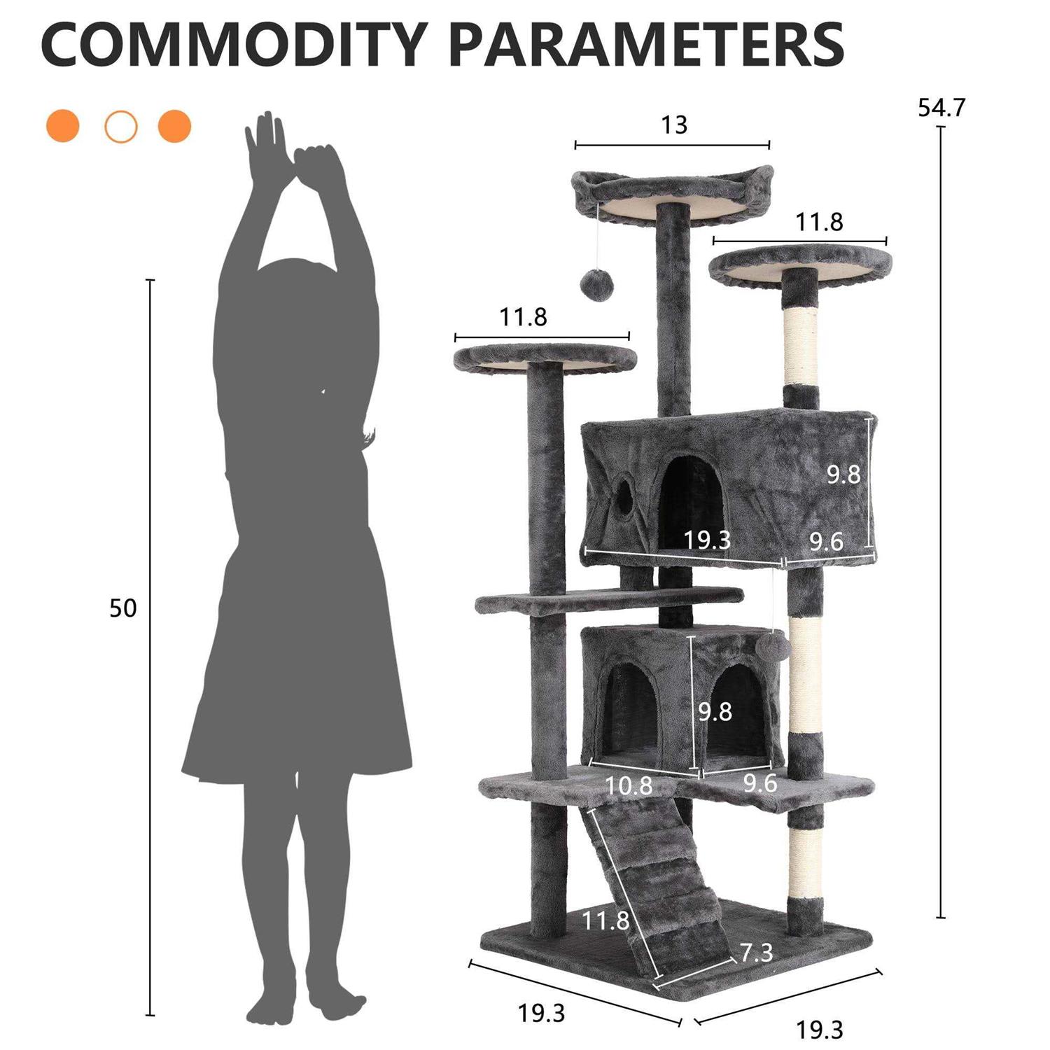 Niamvelo 54-in Double Condo Cat Tree Tower Playhouse with Scratching Post & Perch for Indoor - Pet Supplies online store