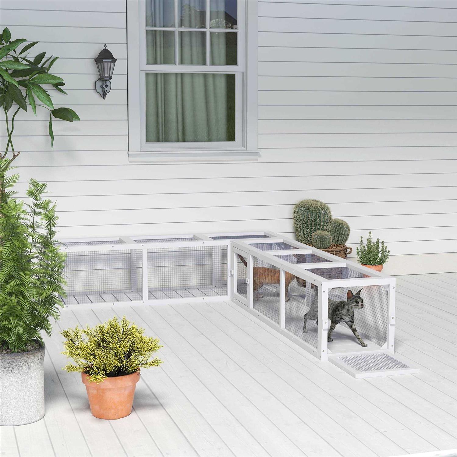 PawHut 59 Long Cat Tunnel with Extendable Design Wooden Outdoor Cat Tunnel House with Weather Protection - Pet Supplies online store