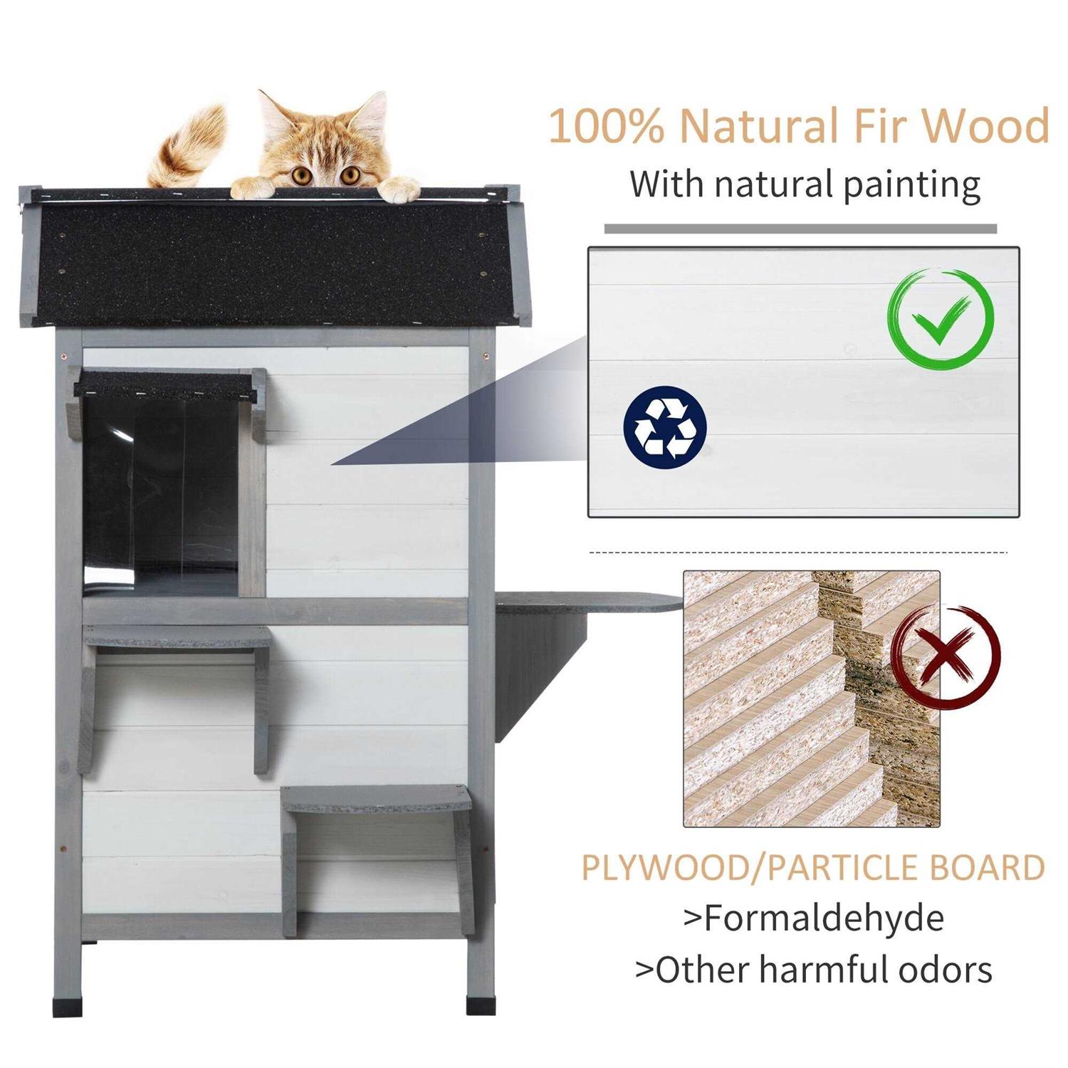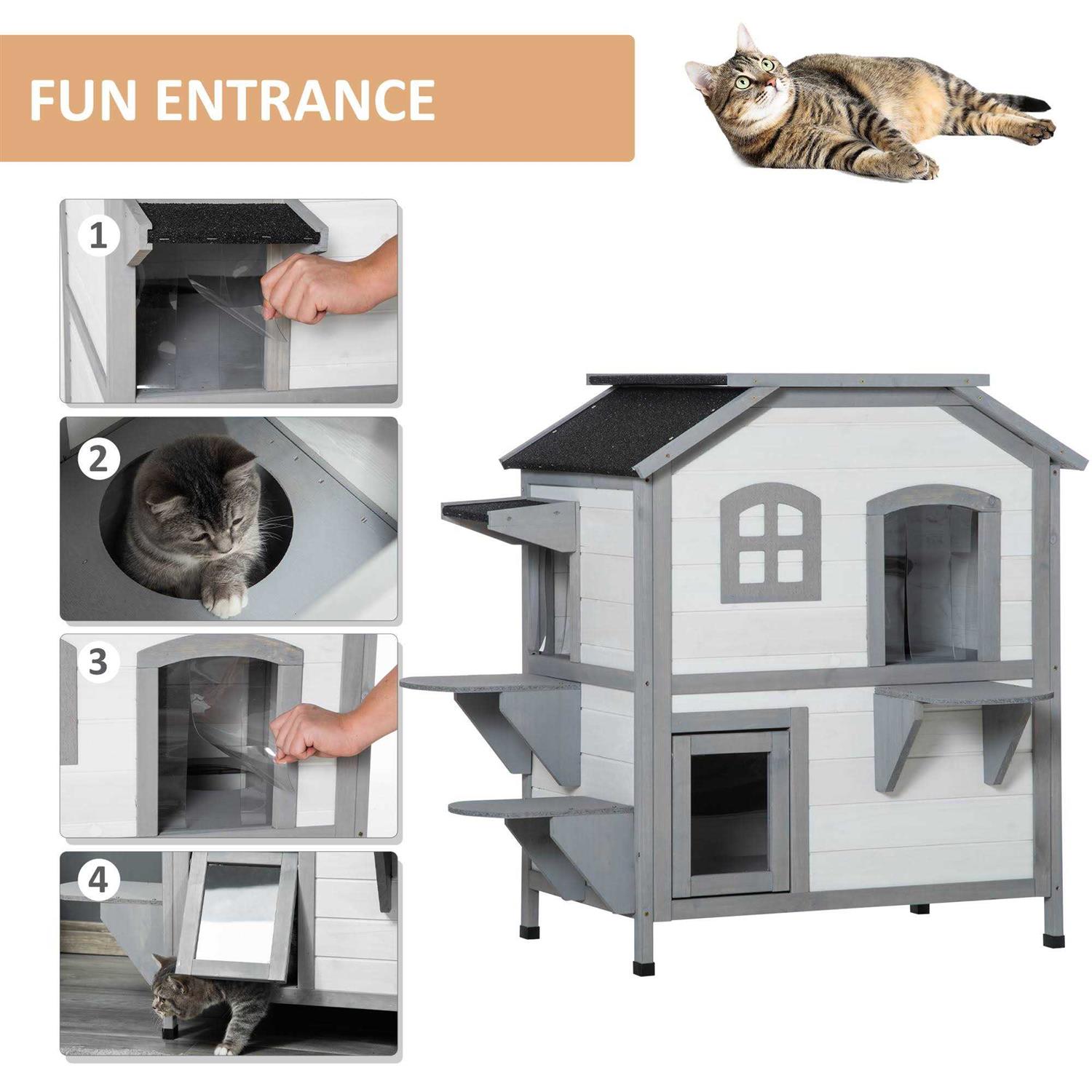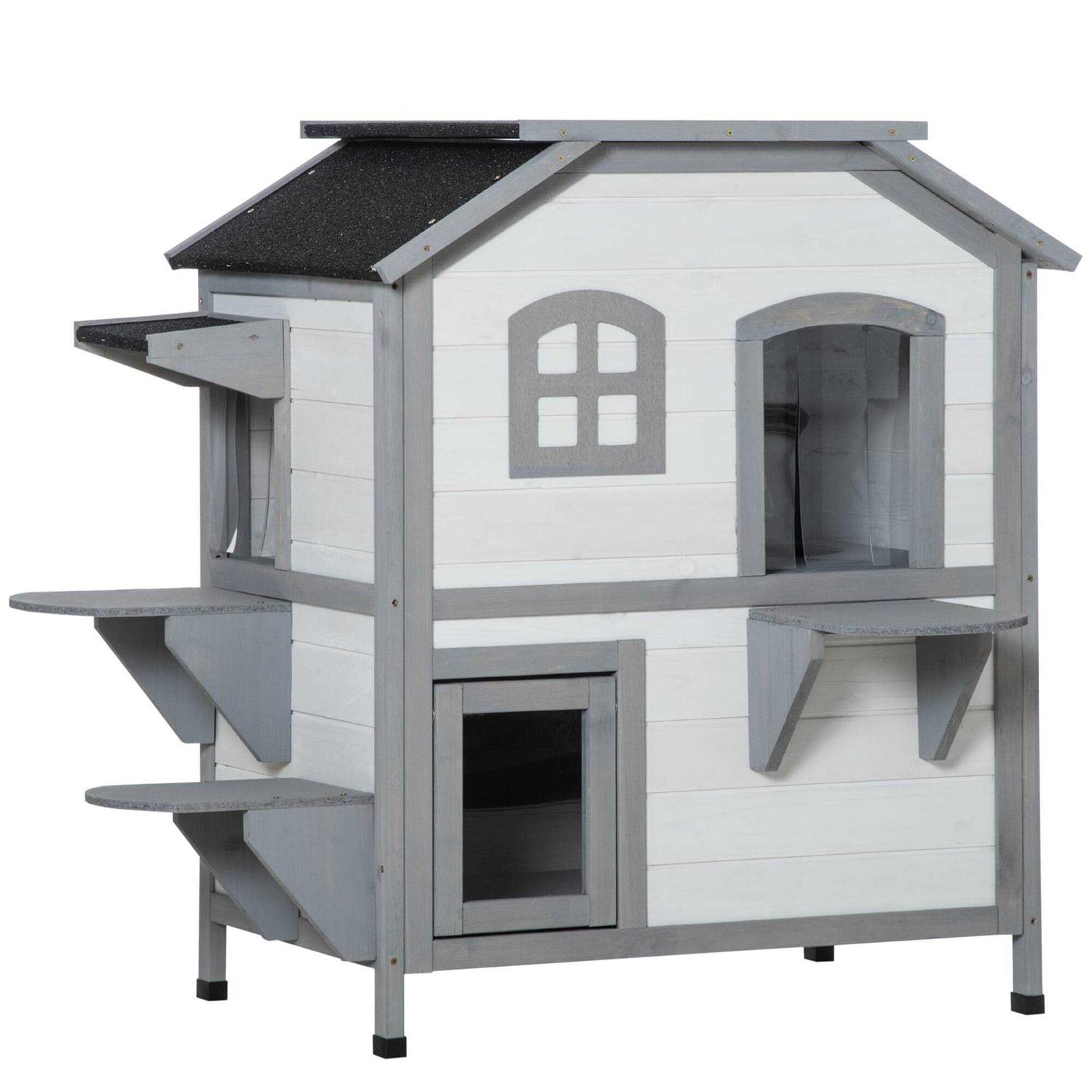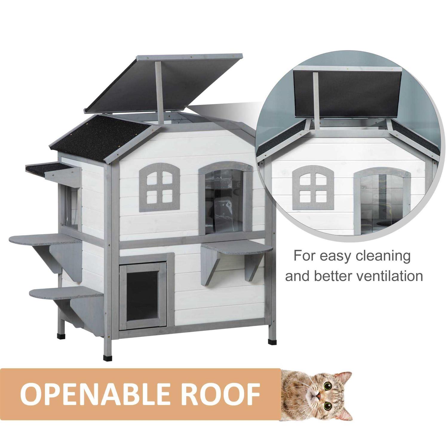PawHut Wooden 2-Story Outdoor Cat House with Escape Door, Cat Openable Roof Platforms - Pet Supplies online store