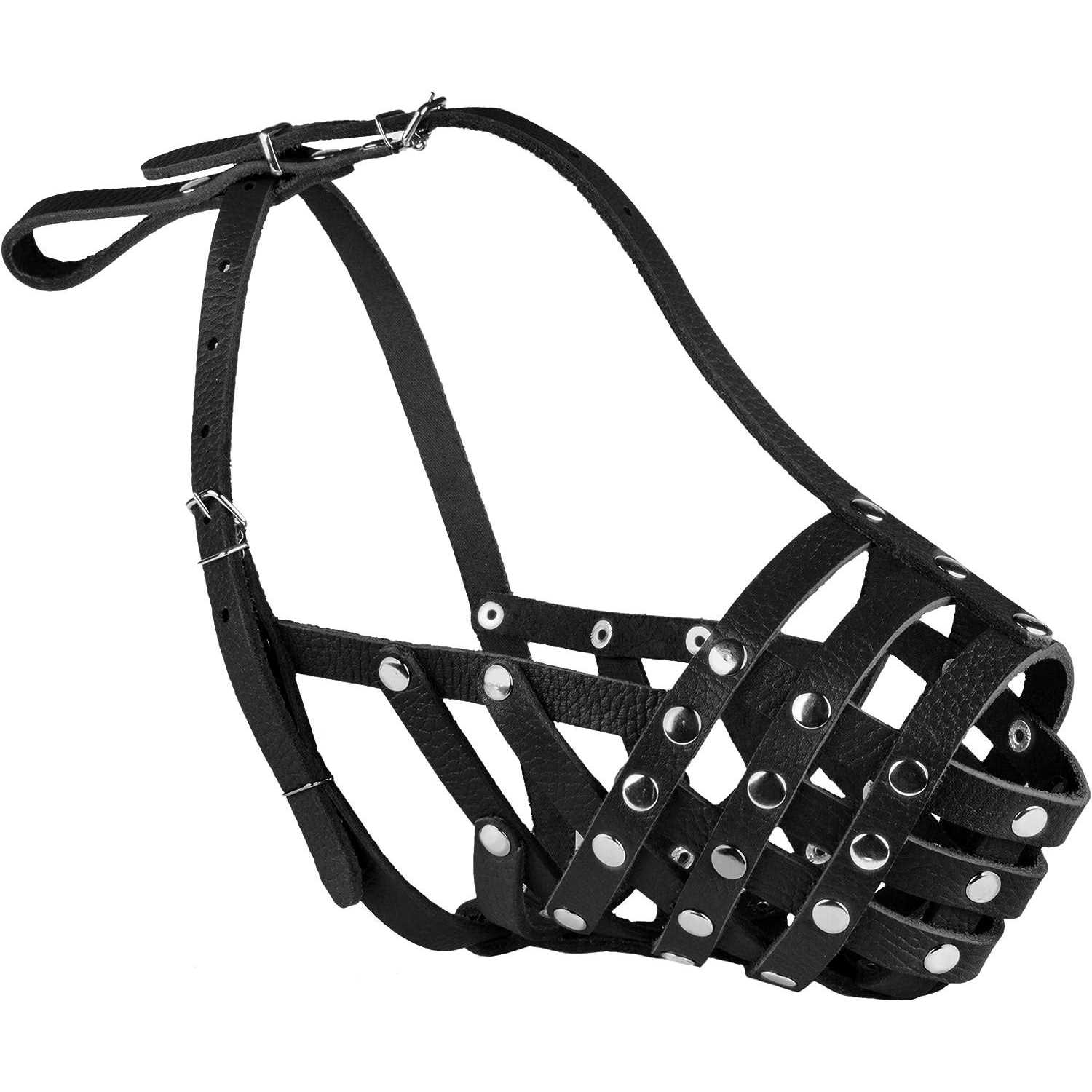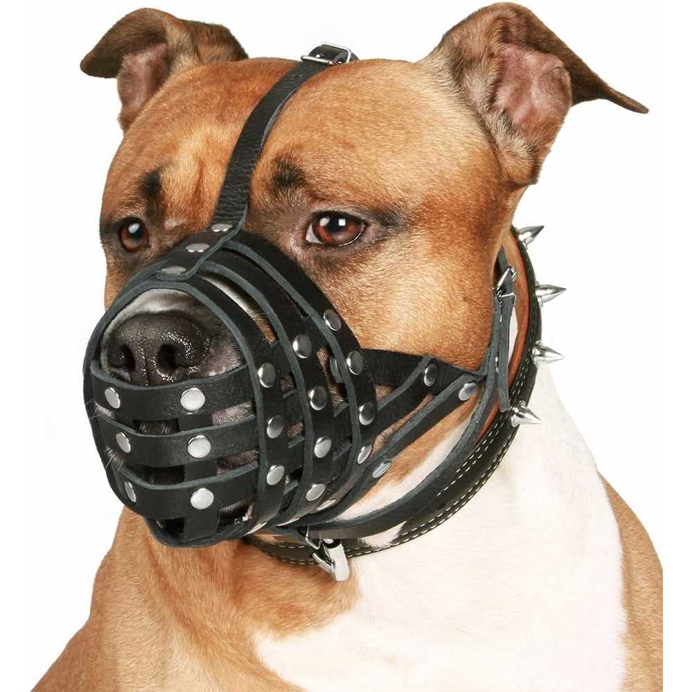 CollarDirect Dog Muzzle Pitbull Amstaff Basket Genuine Leather Staffordshire Terrier - Pet Supplies online store