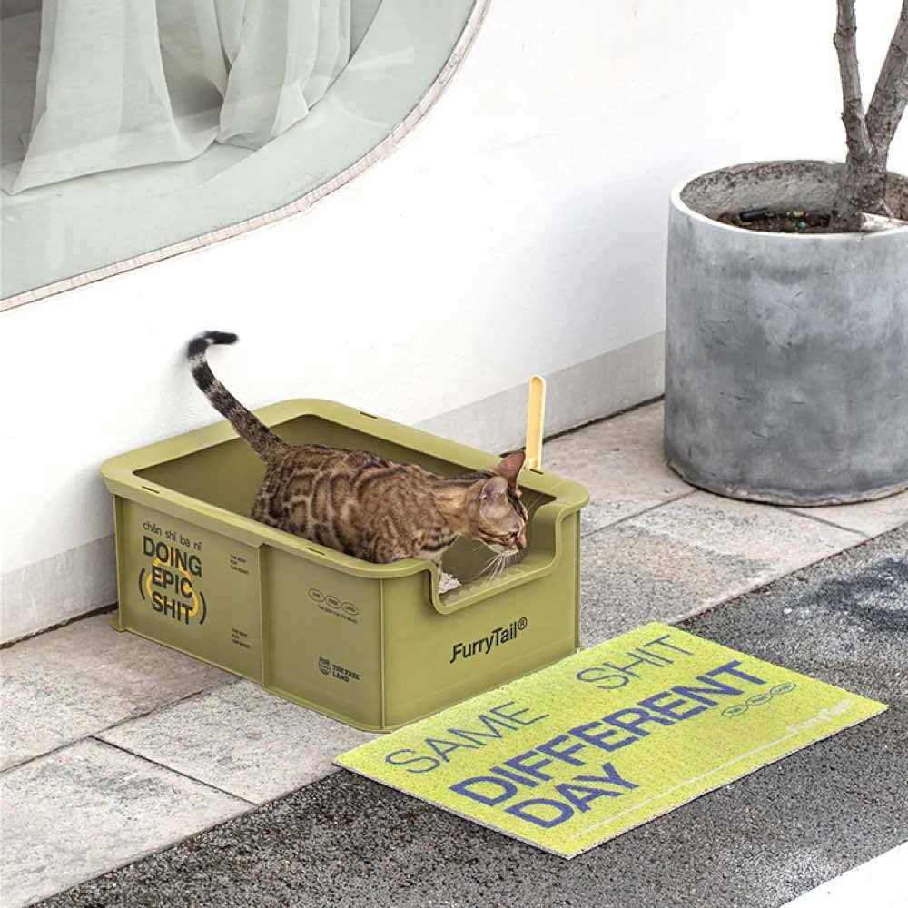 Furrytail Camp Open Rimmed XL Cat Litter Box With Scoop - Pet Supplies online store