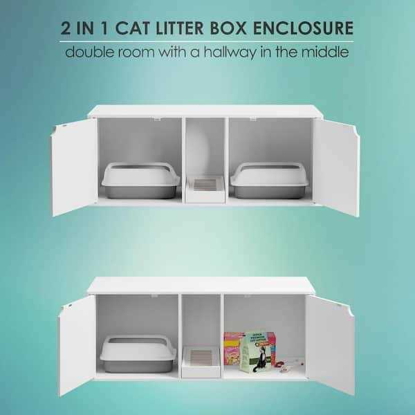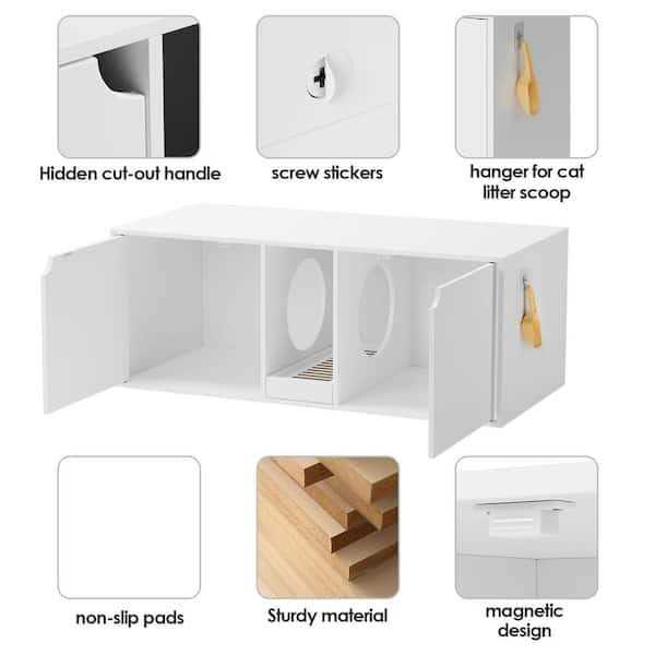 FUFU&GAGA White Wood Side End Table Cat Litter Box with Double Room - Pet Supplies online store