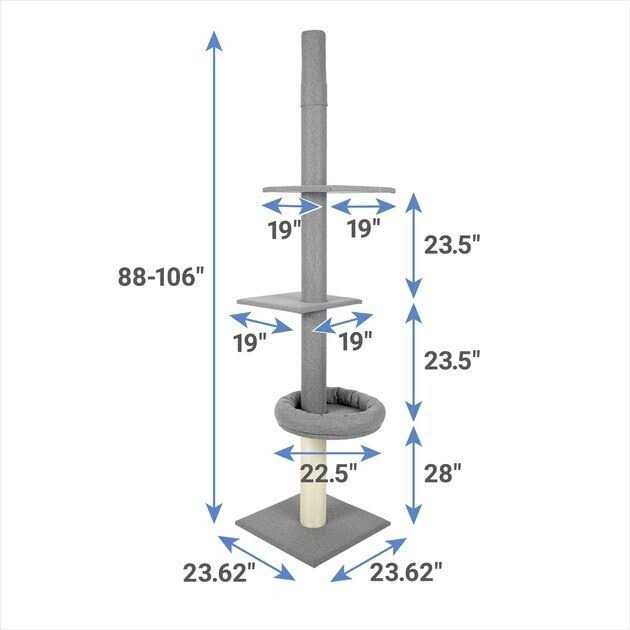 Frisco 88 to 106-in 3 Level Floor to Ceiling Heavy Duty Cat Tower - Pet Supplies online store