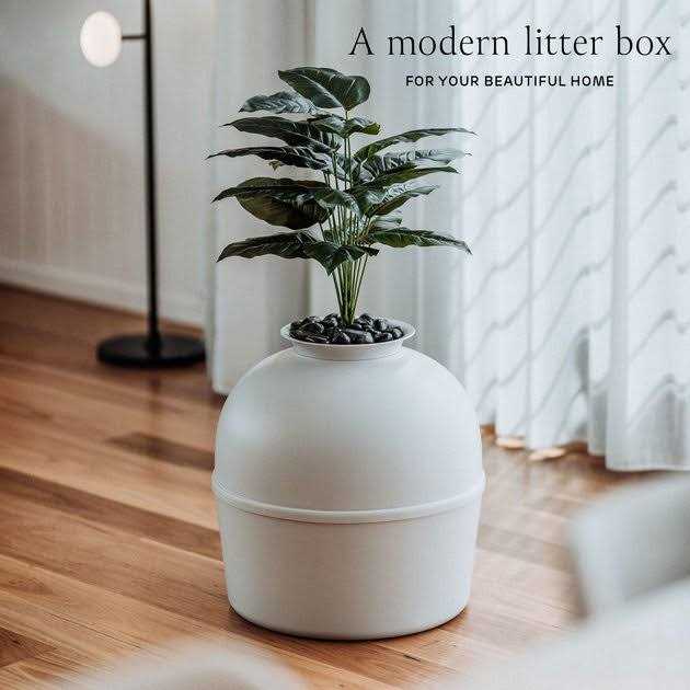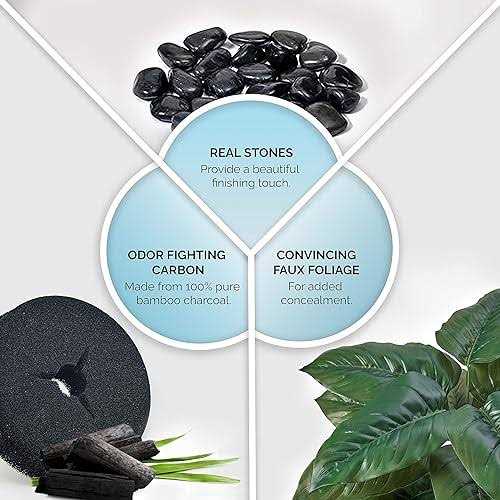 Secret Litter Box by Bundle & Bliss Hidden Litter Box Enclosure with Odor Control Carbon Filter, Faux Plant and Real Stones - Pet Supplies online store