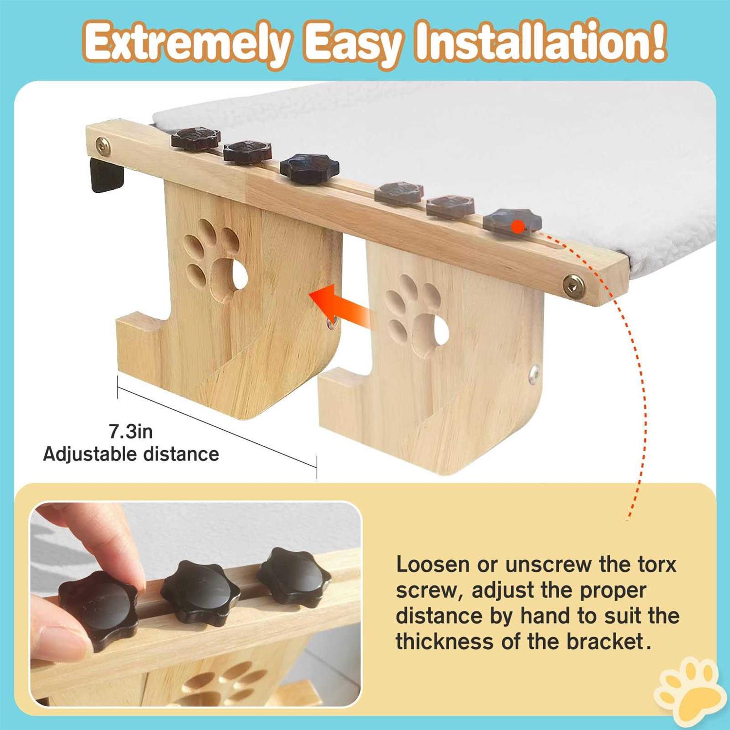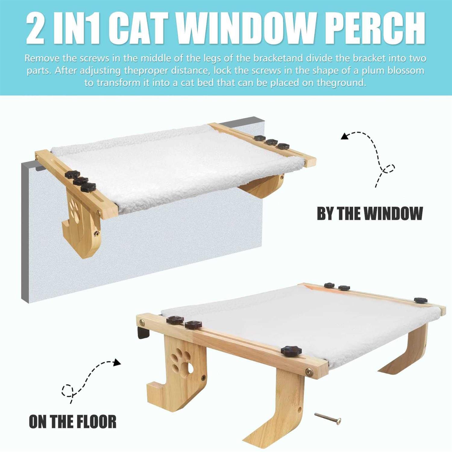 SEEPEARL Cat Window Perch Sturdy Cat Window Hammock with Wood and Metal Frame-No Drilling Required-Multiple Ways to Use-Cat Bed for Windowsill,Floor,Bedside - Pet Supplies online store