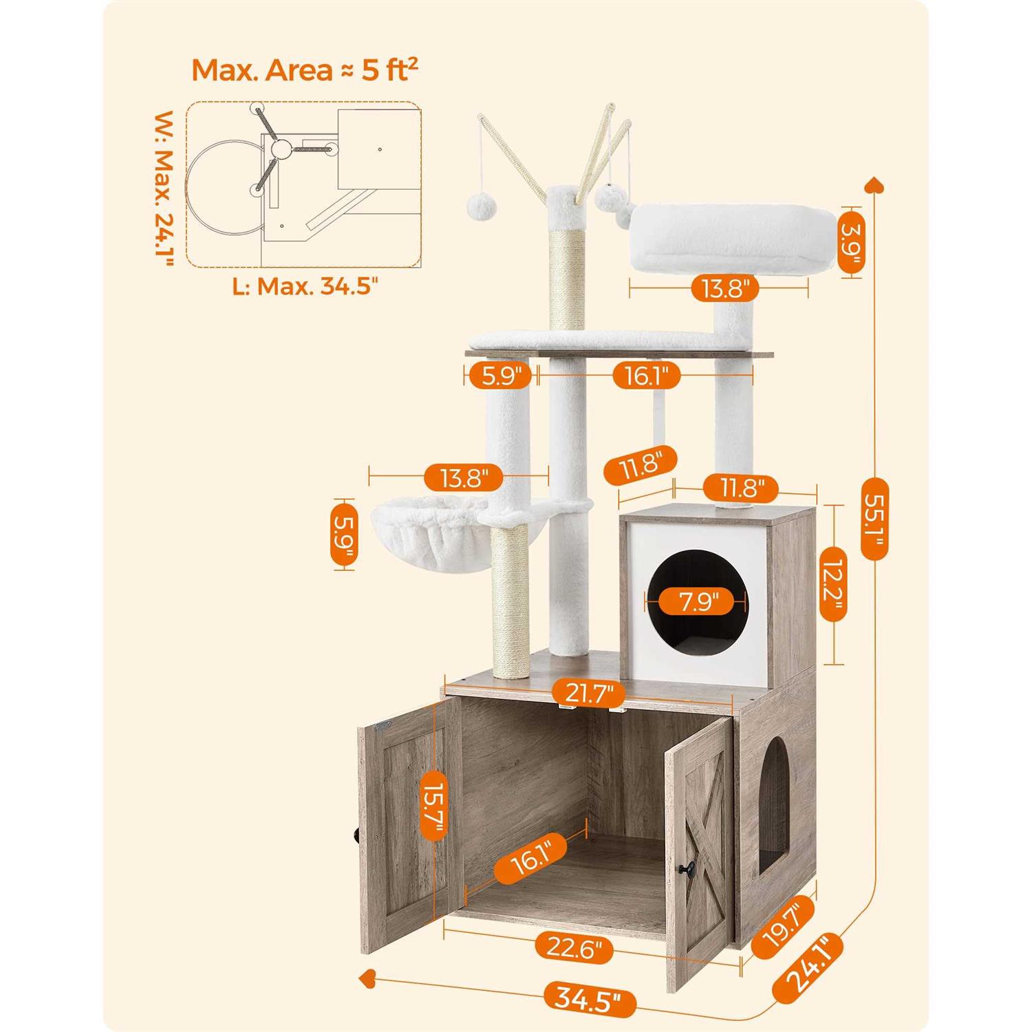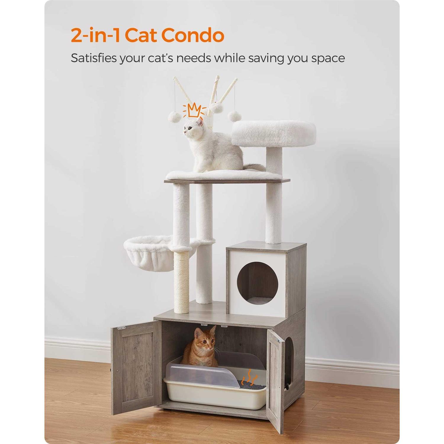 Feandrea WoodyWonders Cat Tree with Litter Box Enclosure 2-in-1 Modern Tower - Pet Supplies online store