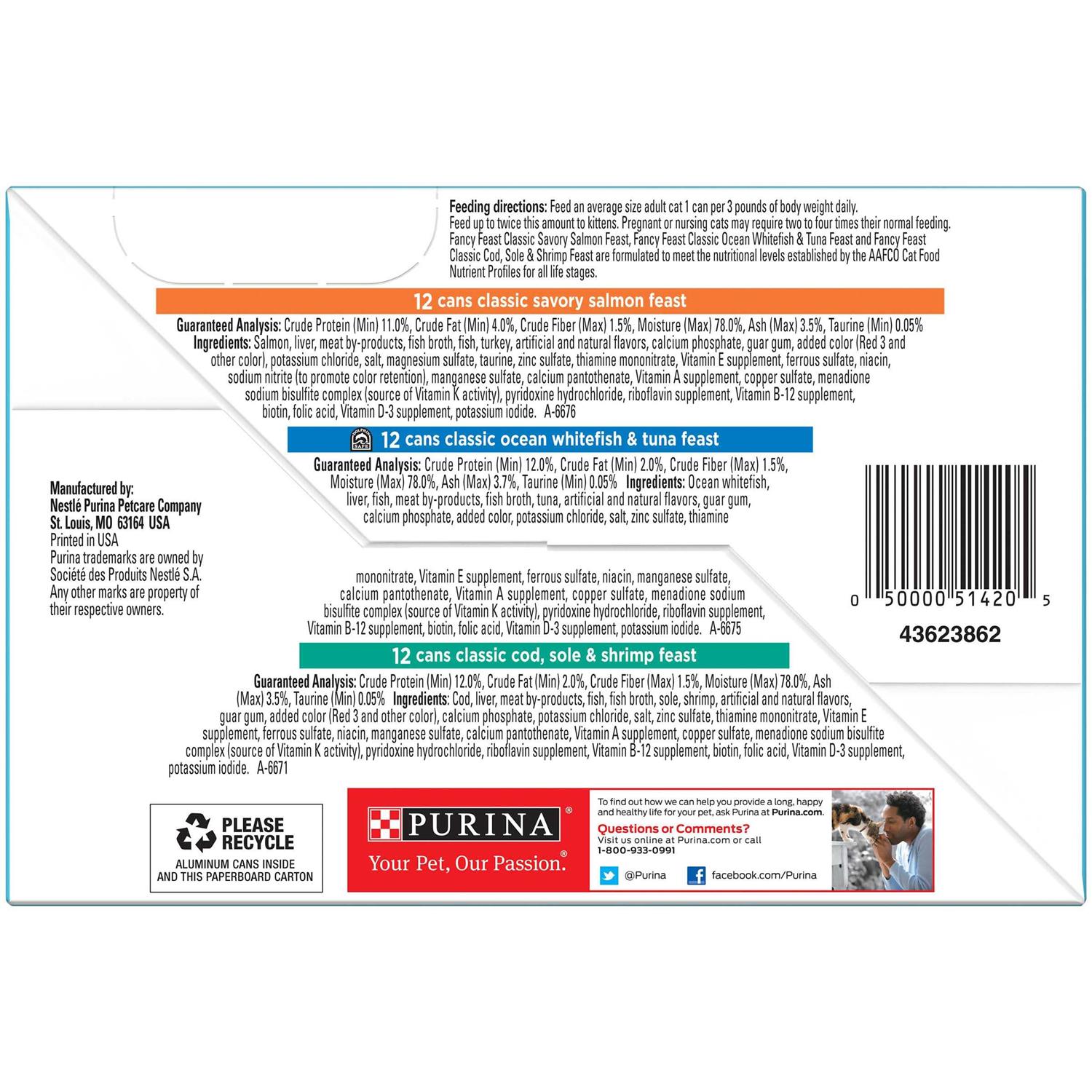 Fancy Feast Seafood Classic Pate Collection Variety Pack Grain-Free Wet Cat Food - Pet Supplies online store