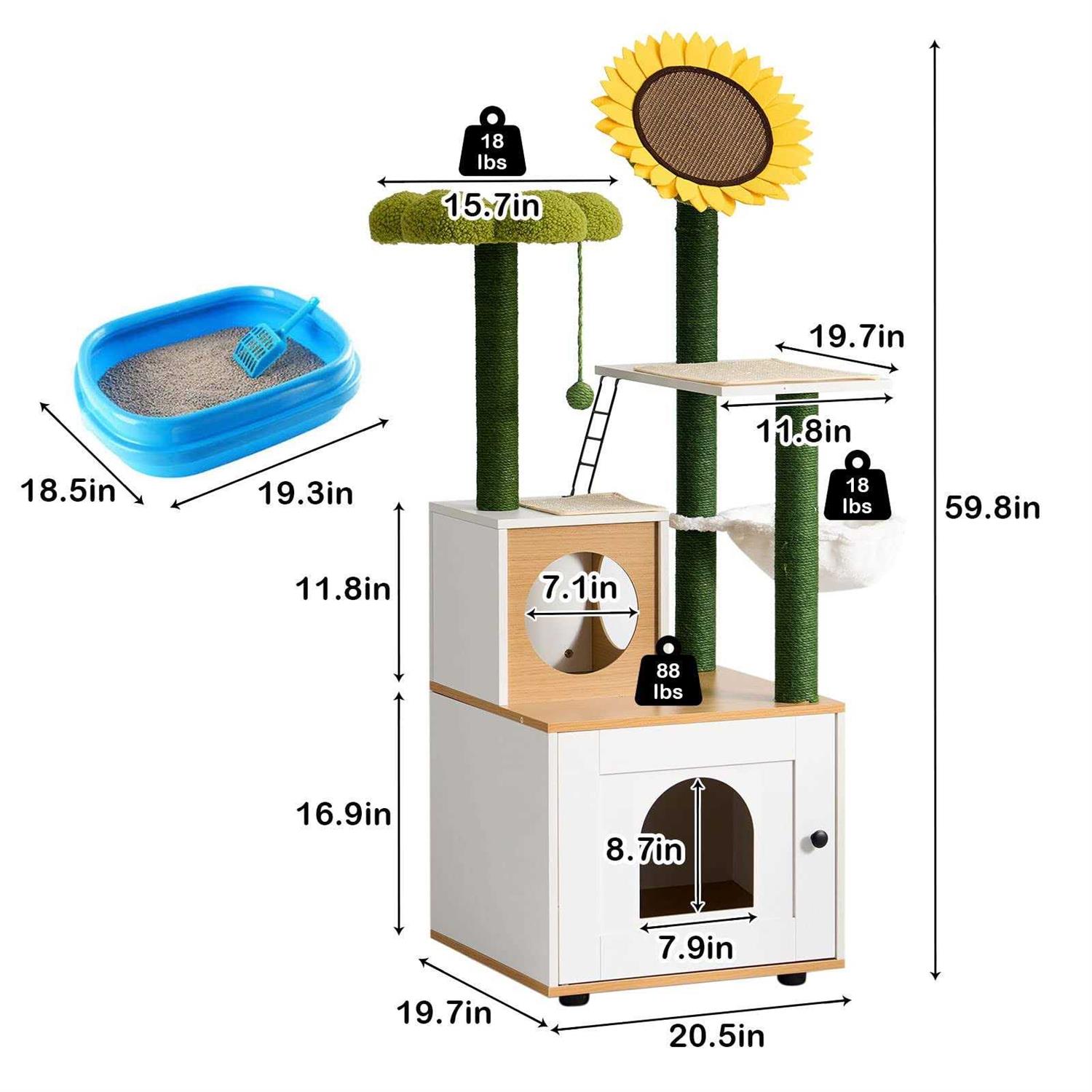 soges Cat Tree with Litter Box Enclosure, Hidden Cat Washroom with Scratching Posts, Cat Tree Tower with Cat Condo and Hammock - Pet Supplies online store