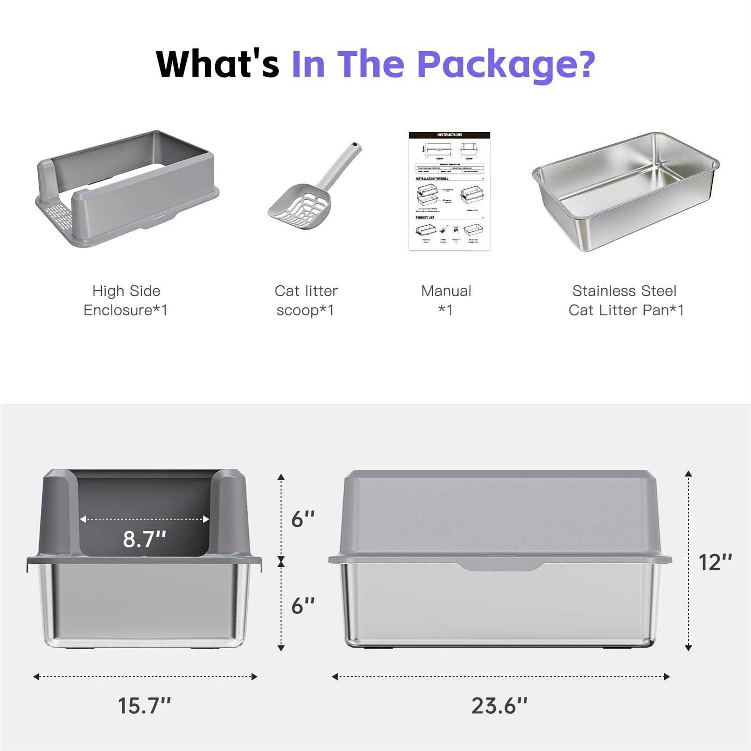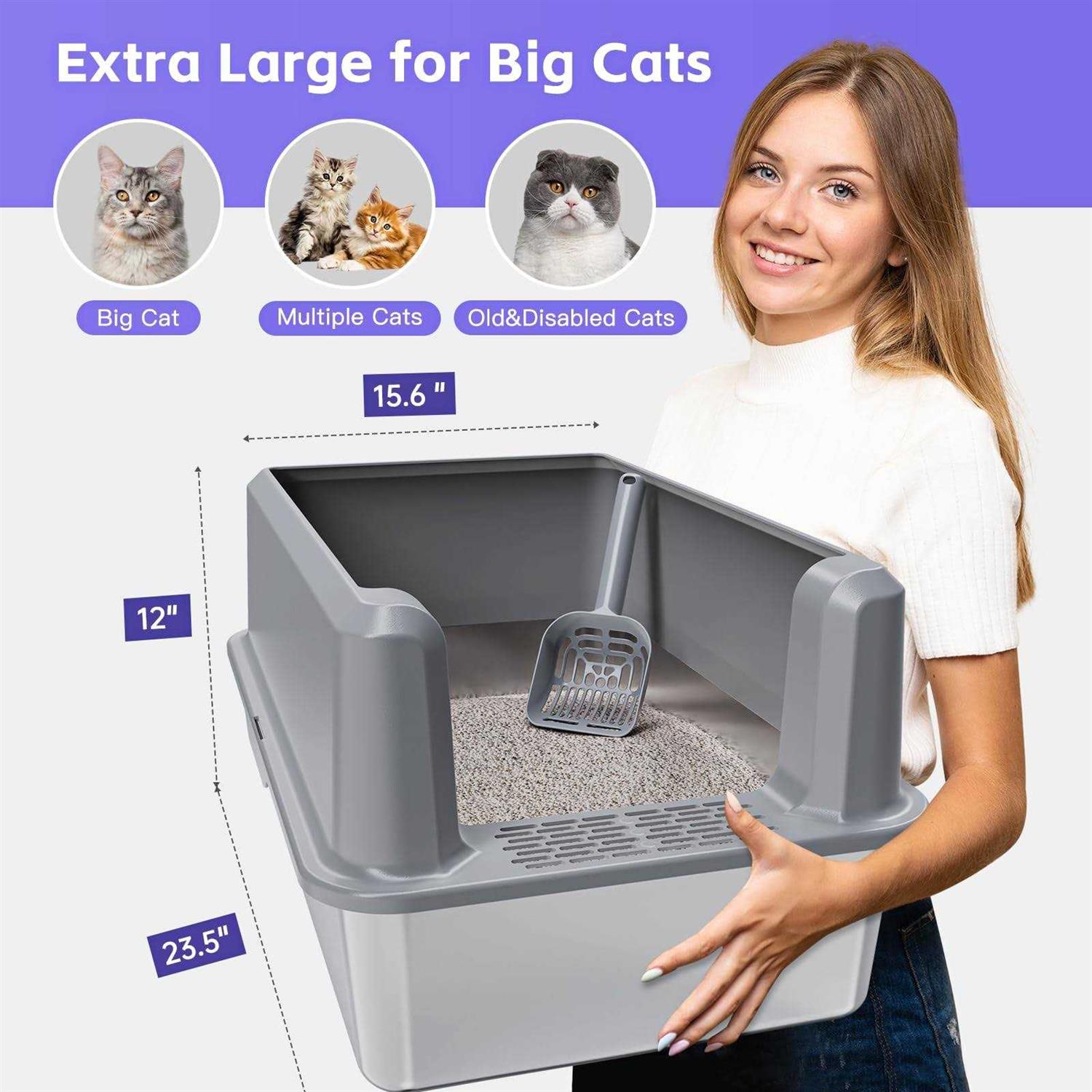 Suitfeel Enclosed Stainless Steel Litter Box XL Metal Litter Box with High Side - Pet Supplies online store