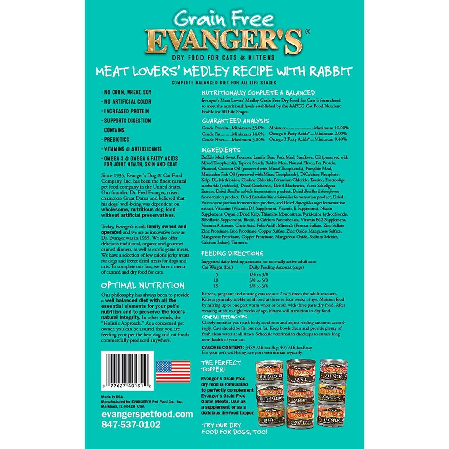 Evanger's Grain Free Meat Lover's Medley with Rabbit Dry Cat Food - Pet Supplies online store