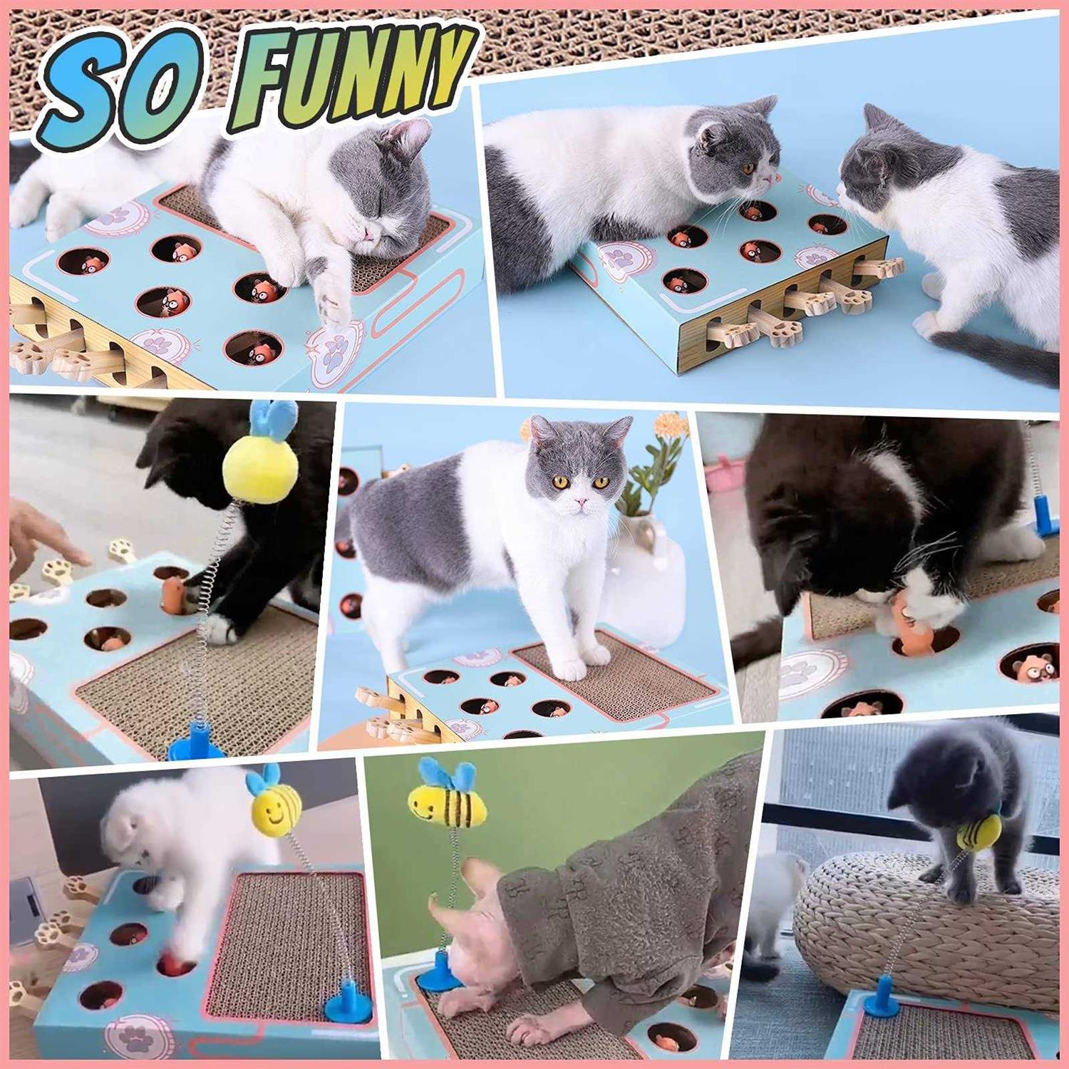 Tookincmo cat Enrichment Toys for Indoor Cats Whack a mole cat Toy with cat Scratching pad - Pet Supplies online store