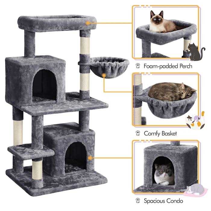 Topeakmart Gray 4-Level Plush Cat Tree with Hammock for Kittens - Pet Supplies online store