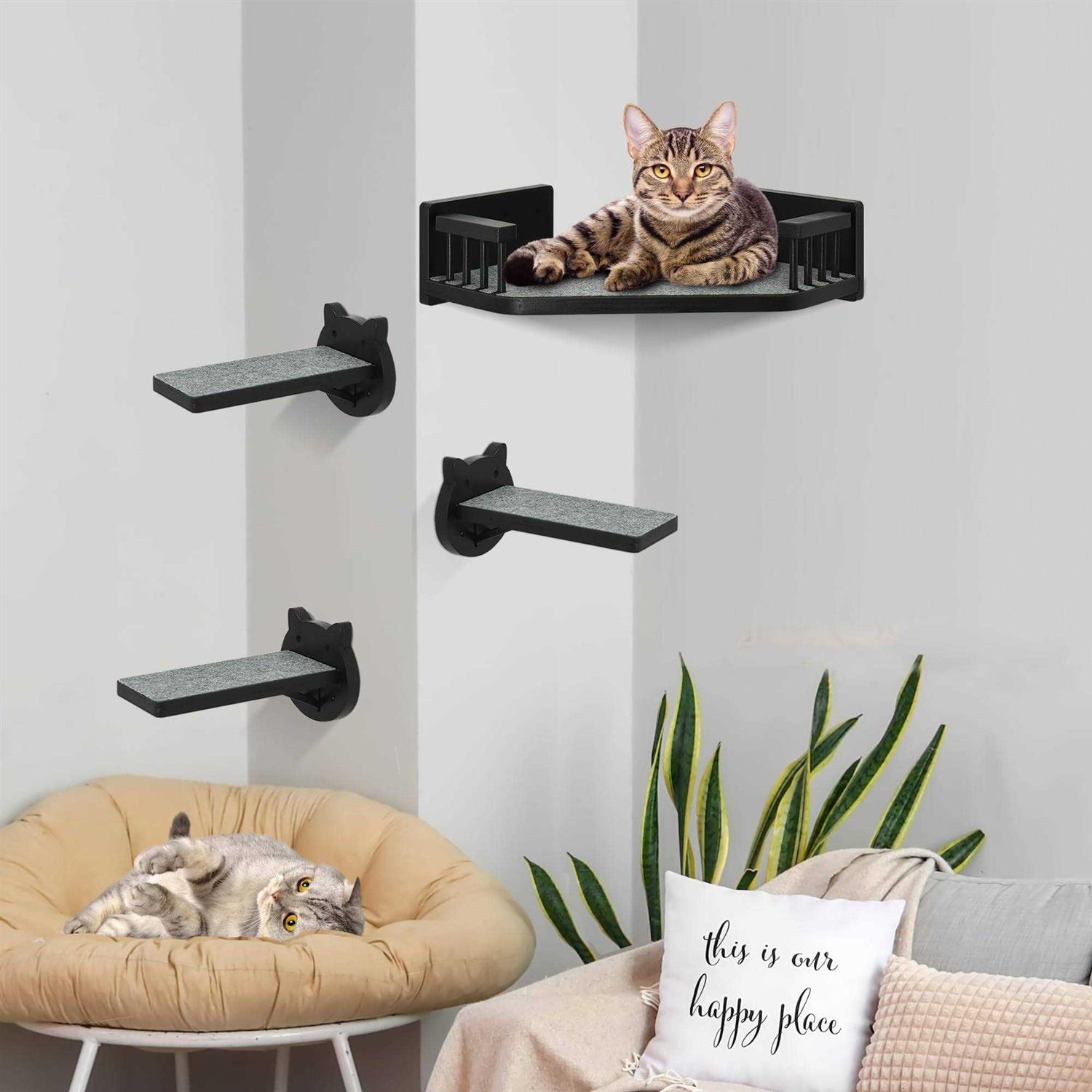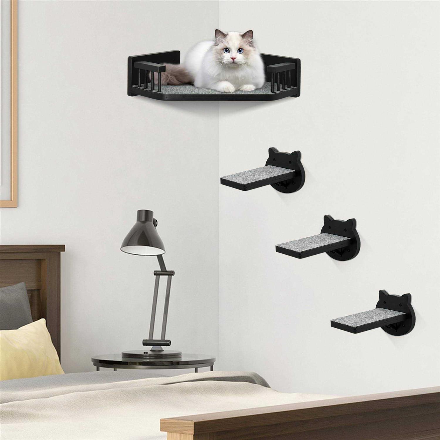 Cat Wall Shelves, Corner Cat Shelves and Perches for Wall Cat Wall Furniture Cat Shelf with 3 Steps - Pet Supplies online store