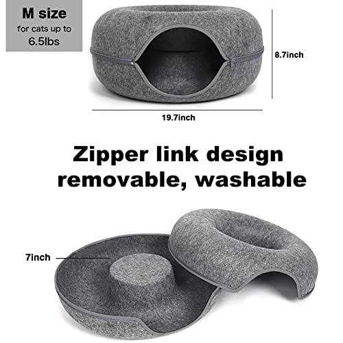 Cat Cave for Indoor Cats Large Cat Donut Cat Tunnel Bed Peekaboo Cat Cave with 3 Toys - Pet Supplies online store