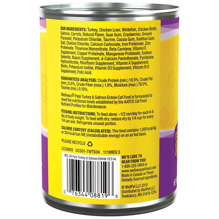 Wellness Complete Health Turkey & Salmon Pate Canned Cat Food 12.5 oz - Pet Supplies online store