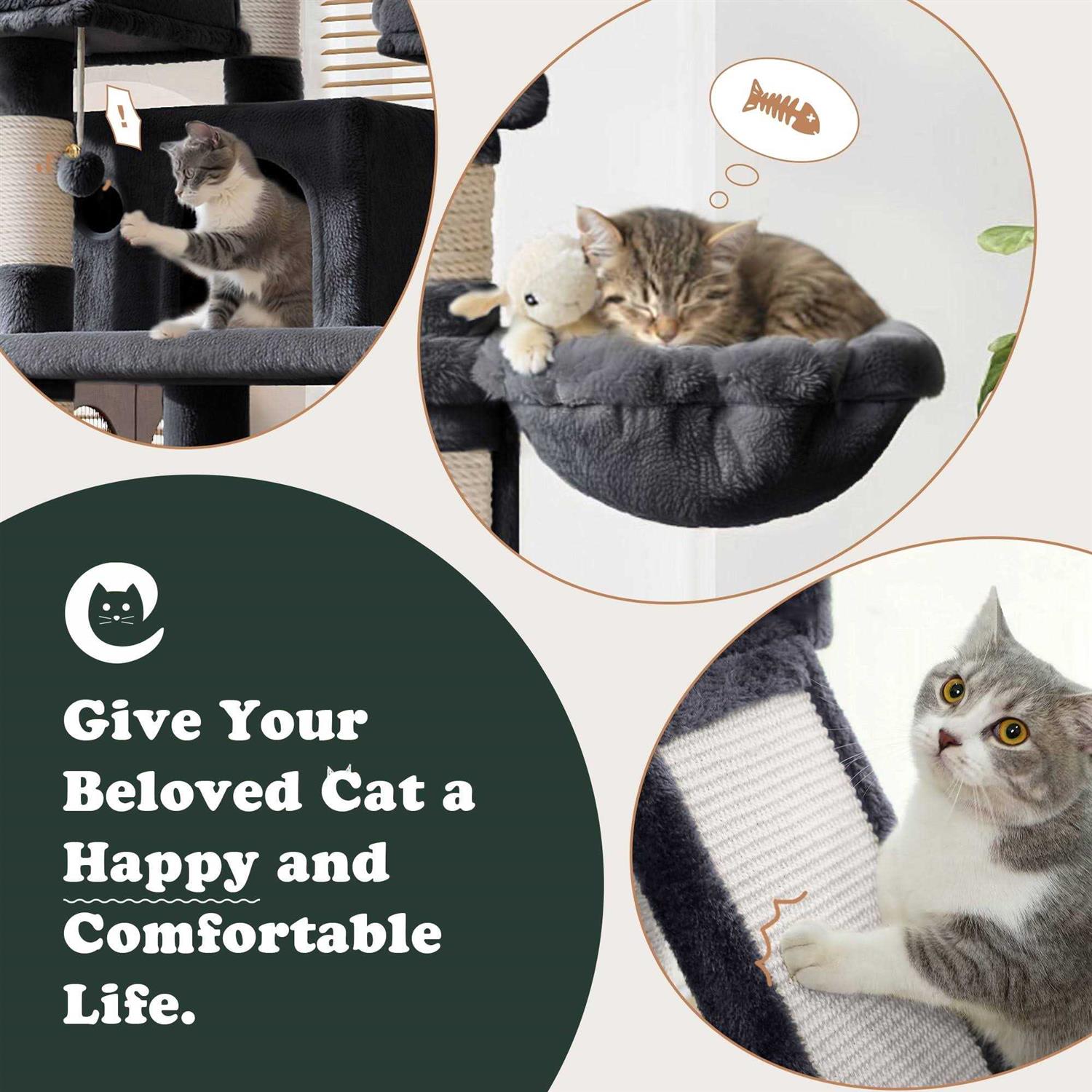 Amolife 68 Inch Cat Tower Multi-Level / X-Large Cat Tree King with Scratching Posts Kitty Pet Play House - Pet Supplies online store