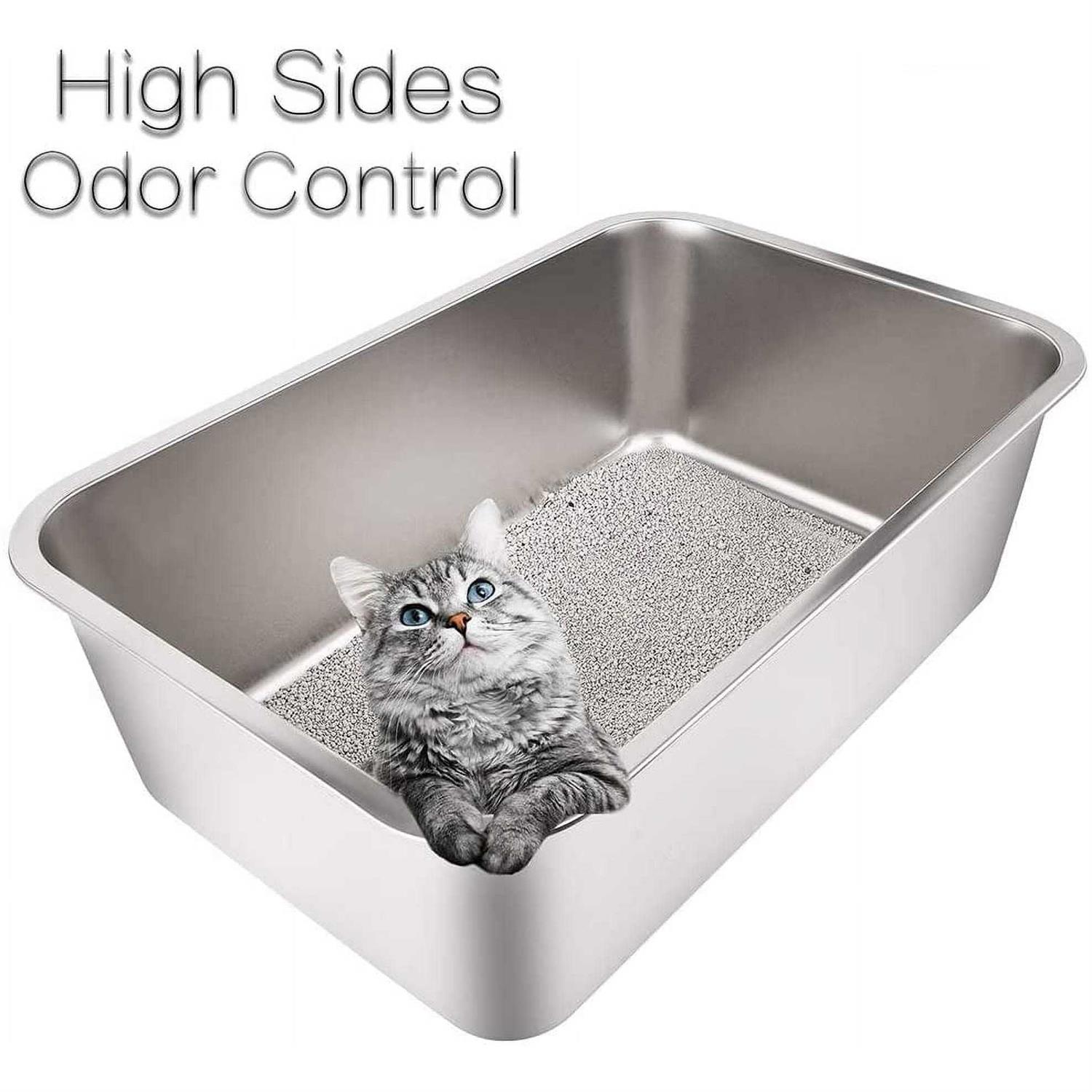 Yangbaga Stainless Steel Litter Box for Cat and Rabbit, Large Size with 8in High Sides and Non Slip Rubber Feet. Odor Control - Pet Supplies online store