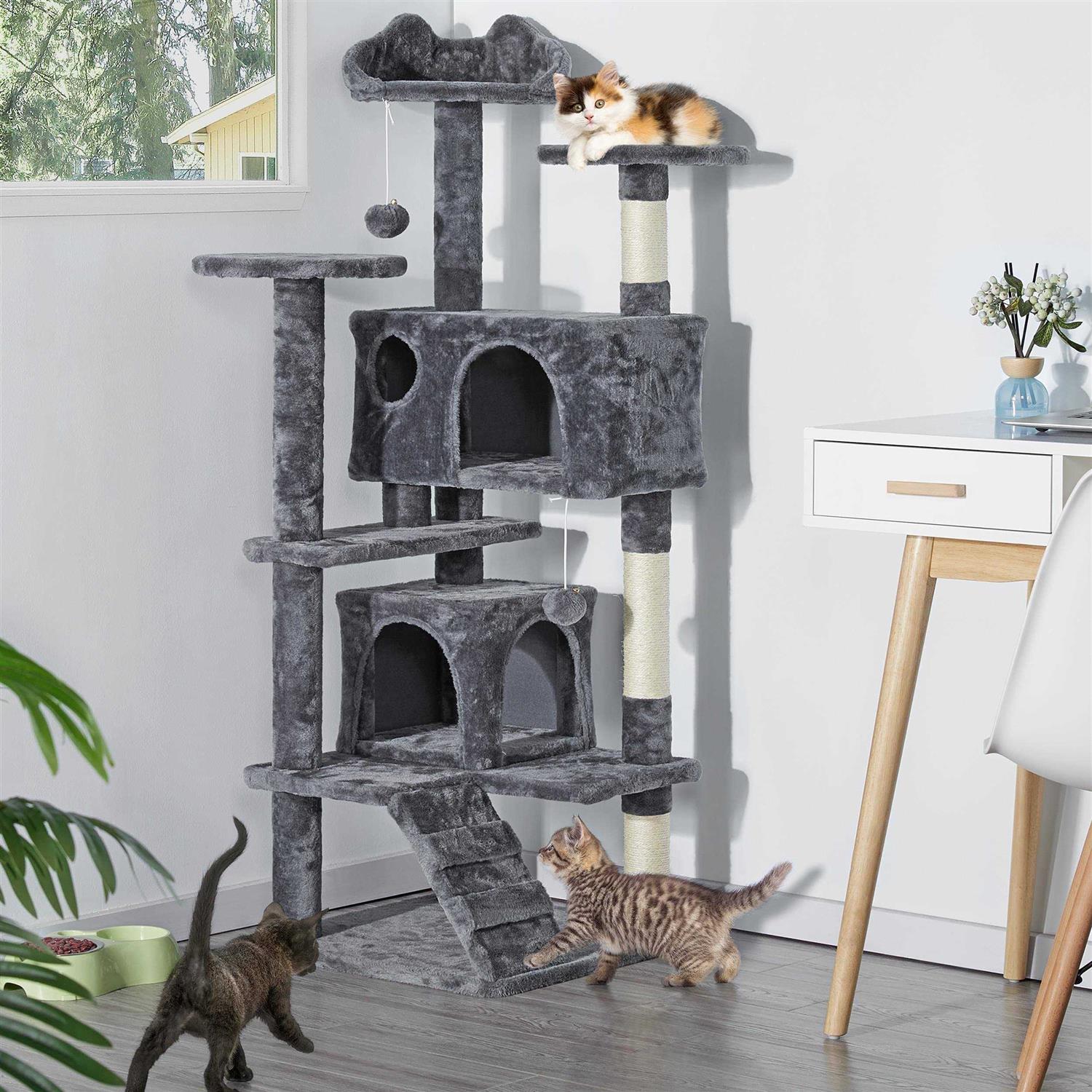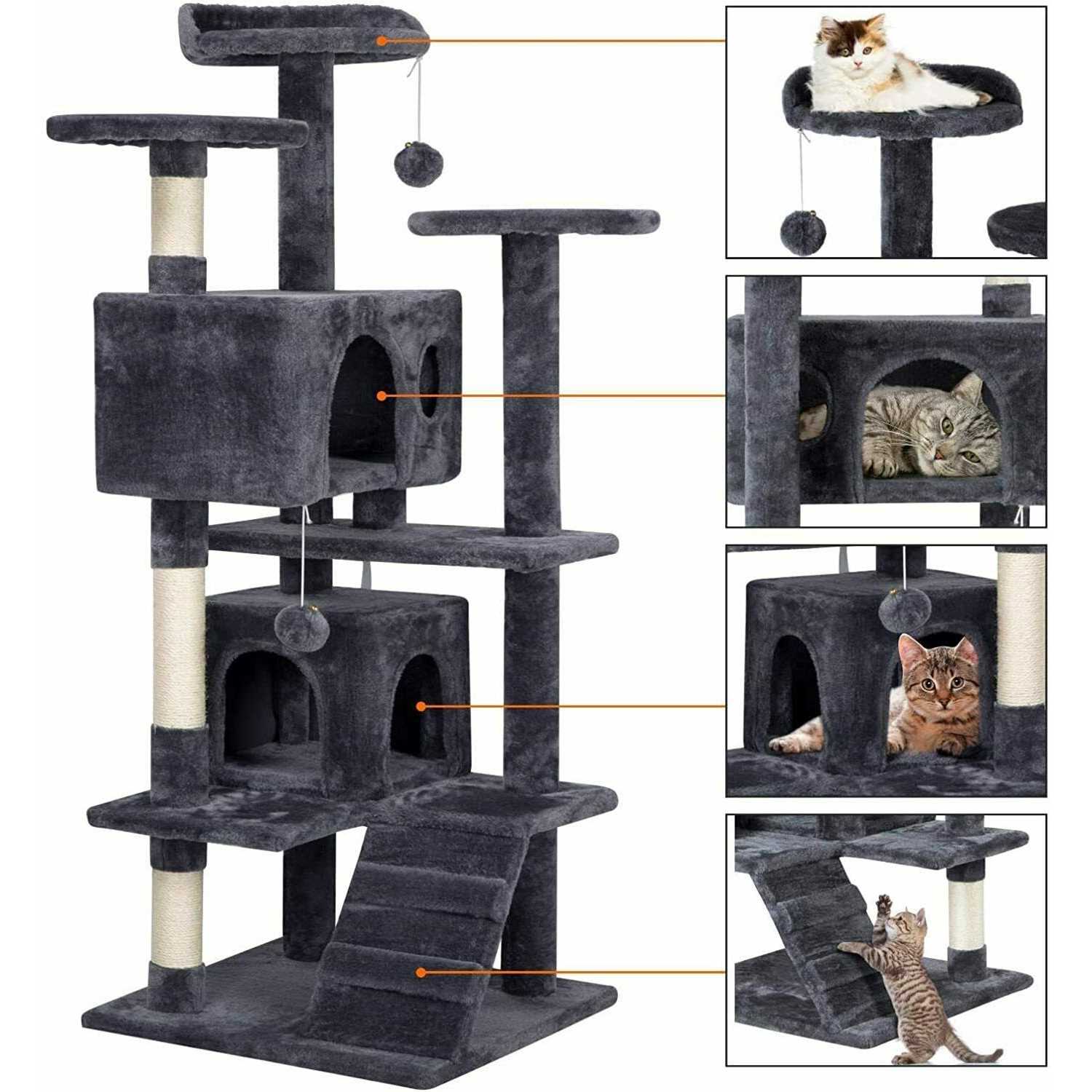 Yaheetech 57-in Plush Cat Tree & Condo - Pet Supplies online store