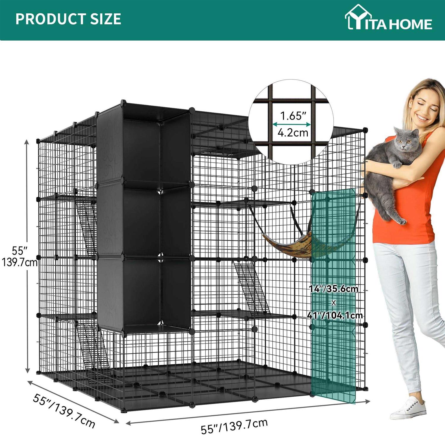 YITAHOME Cat Cage Indoor Large with Storage Cube DIY Catio Cat Enclosures Metal Cat Playpen with Hammock 1-4 Cats Tiers Cat - Pet Supplies online store